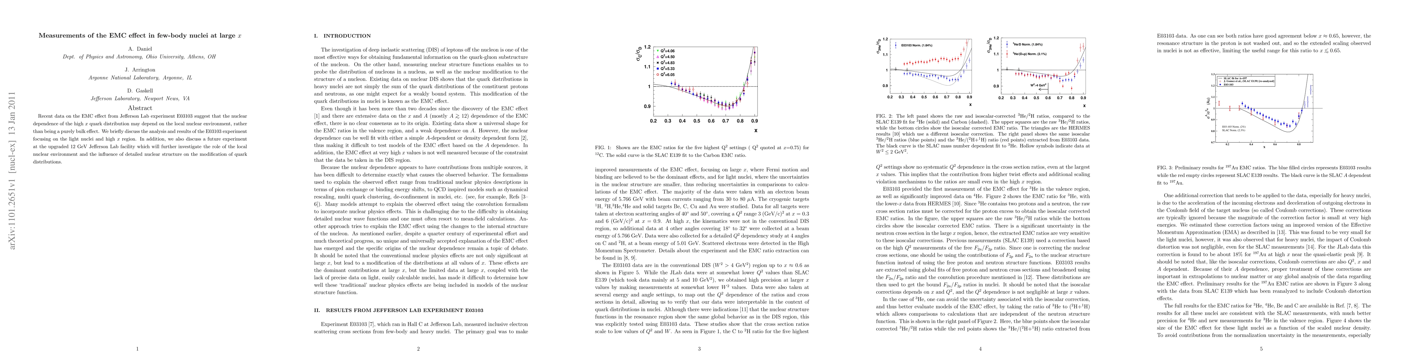 Recent data on the EMC effect from Jefferson Lab experiment E03103 suggest that the nuclear dependence of the high x quark distribution may depend on the local nuclear environment, rather than being a purely bulk effect. We briefly discuss the analysis and results of the E03103 experiment focusing on the light nuclei and high x region. In addition, we also discuss a future experiment at the upgraded 12 GeV Jefferson Lab facility which will further investigate the role of the local nuclear environment and the influence of detailed nuclear structure on the modification of quark distributions.