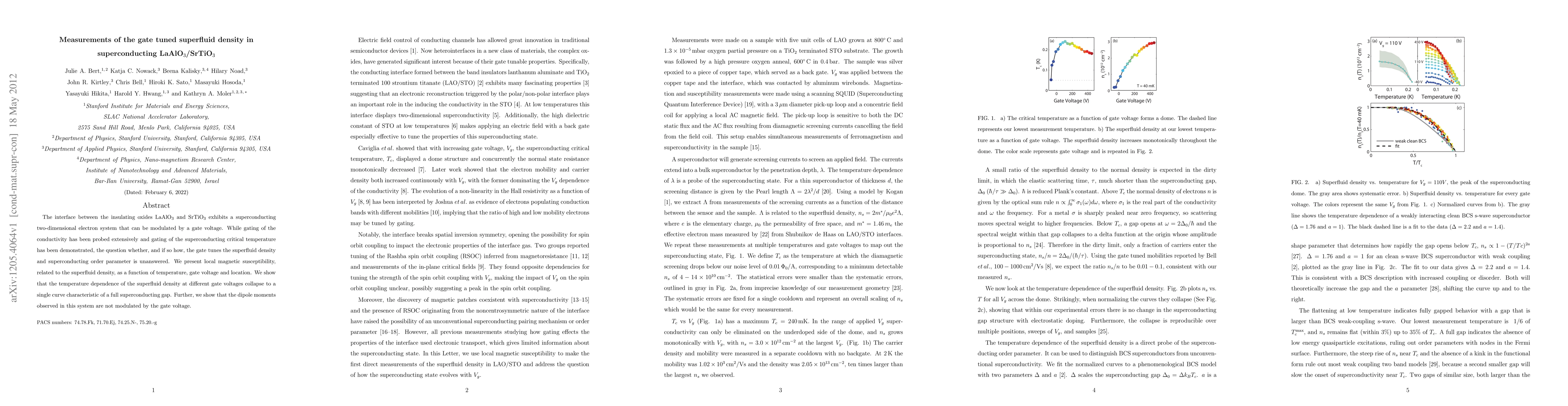 This study investigates how gate voltage modulates the superfluid density at the interface between LaAlO3 and SrTiO3, revealing that the temperature dependence of the superfluid density collapses to a single curve indicative of a full superconducting gap. The research also finds that the dipole moments in the system remain unaffected by the gate voltage.