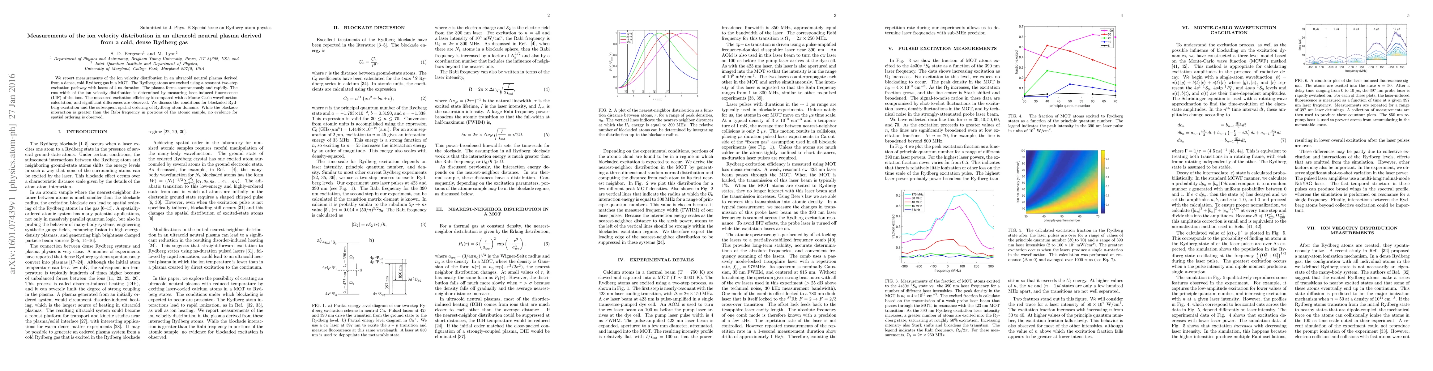 This paper reports on the measurement of ion velocity distributions in an ultracold neutral plasma formed from a dense Rydberg gas in a magneto-optical trap (MOT). The study reveals significant discrepancies between experimental excitation efficiency and Monte-Carlo calculations, despite the blockade interaction exceeding the Rabi frequency in parts of the sample, with no evidence of spatial ordering observed.