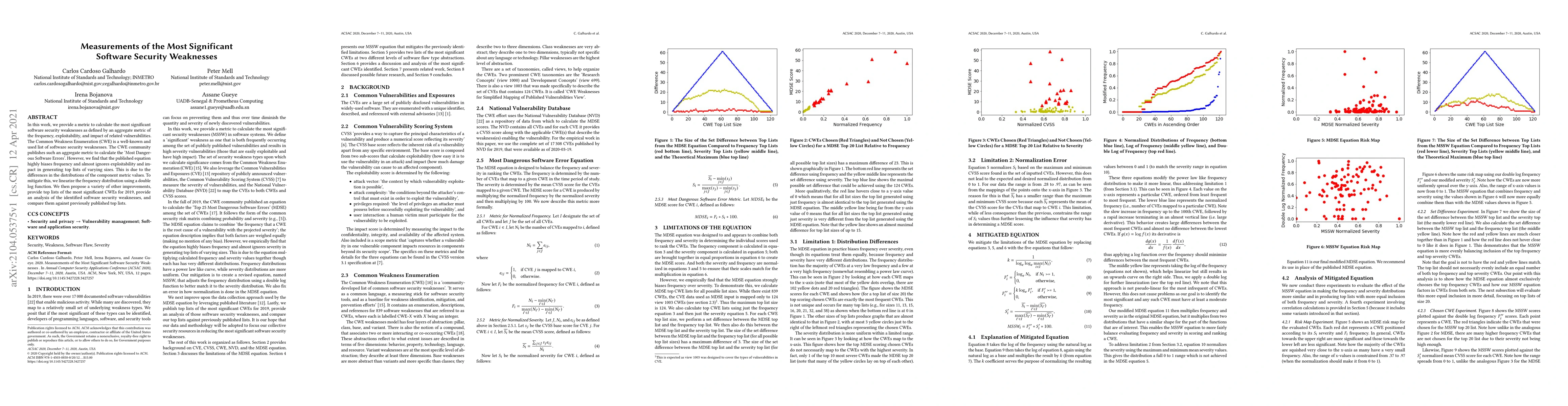 In this work, we provide a metric to calculate the most significant software security weaknesses as defined by an aggregate metric of the frequency, exploitability, and impact of related vulnerabilities. The Common Weakness Enumeration (CWE) is a well-known and used list of software security weaknesses. The CWE community publishes such an aggregate metric to calculate the `Most Dangerous Software Errors'. However, we find that the published equation highly biases frequency and almost ignores exploitability and impact in generating top lists of varying sizes. This is due to the differences in the distributions of the component metric values. To mitigate this, we linearize the frequency distribution using a double log function. We then propose a variety of other improvements, provide top lists of the most significant CWEs for 2019, provide an analysis of the identified software security weaknesses, and compare them against previously published top lists.