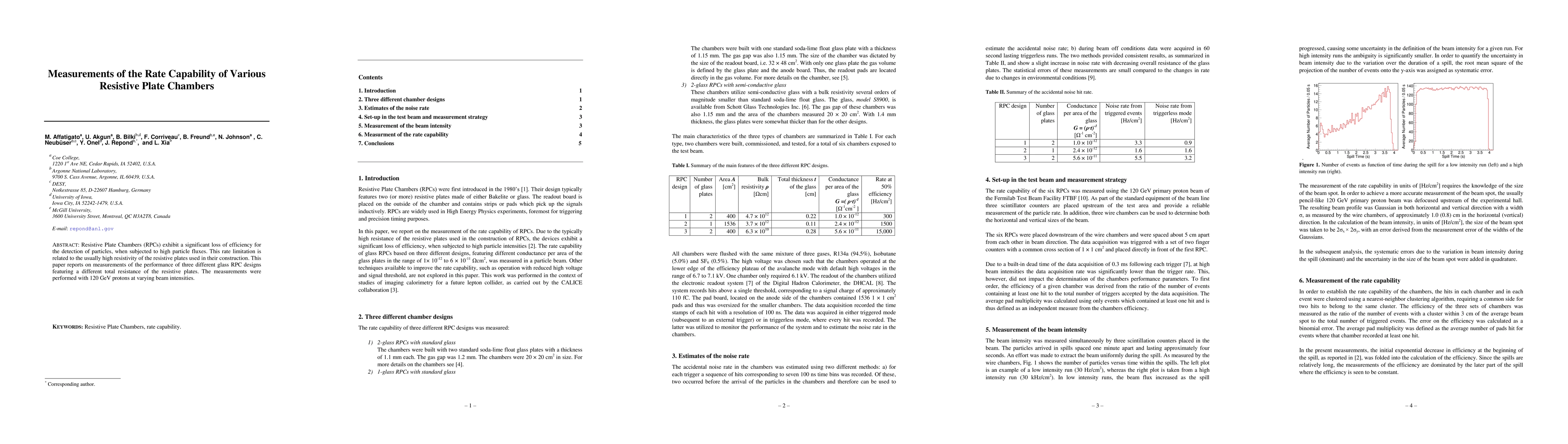This paper investigates the rate capability of three different glass Resistive Plate Chambers (RPCs) under varying proton beam intensities, revealing efficiency losses due to high particle fluxes and highlighting the impact of the resistive plates' total resistance on performance.