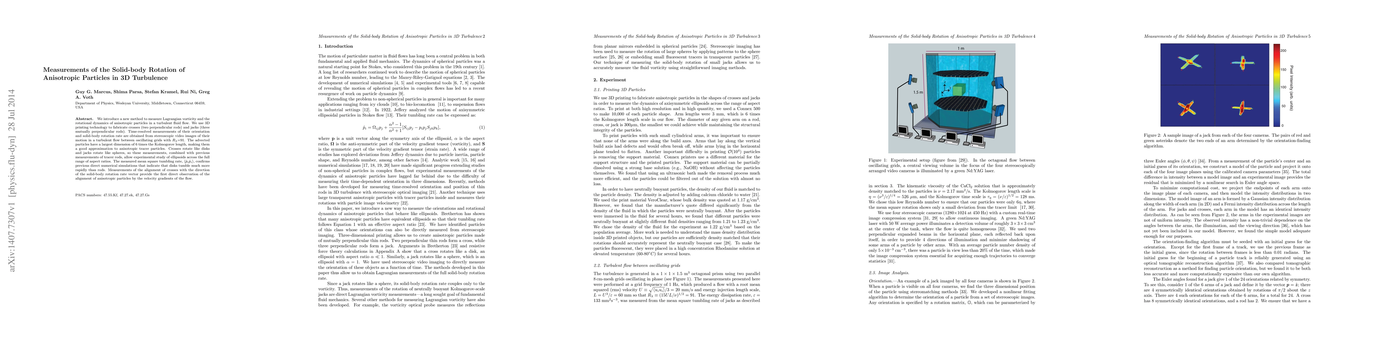 This paper introduces a new method to measure the rotational dynamics of anisotropic particles in turbulent fluid flow using 3D printed crosses and jacks. The study reveals that these particles tumble differently based on their shape, confirming simulations and providing direct evidence of anisotropic particle alignment due to velocity gradients.