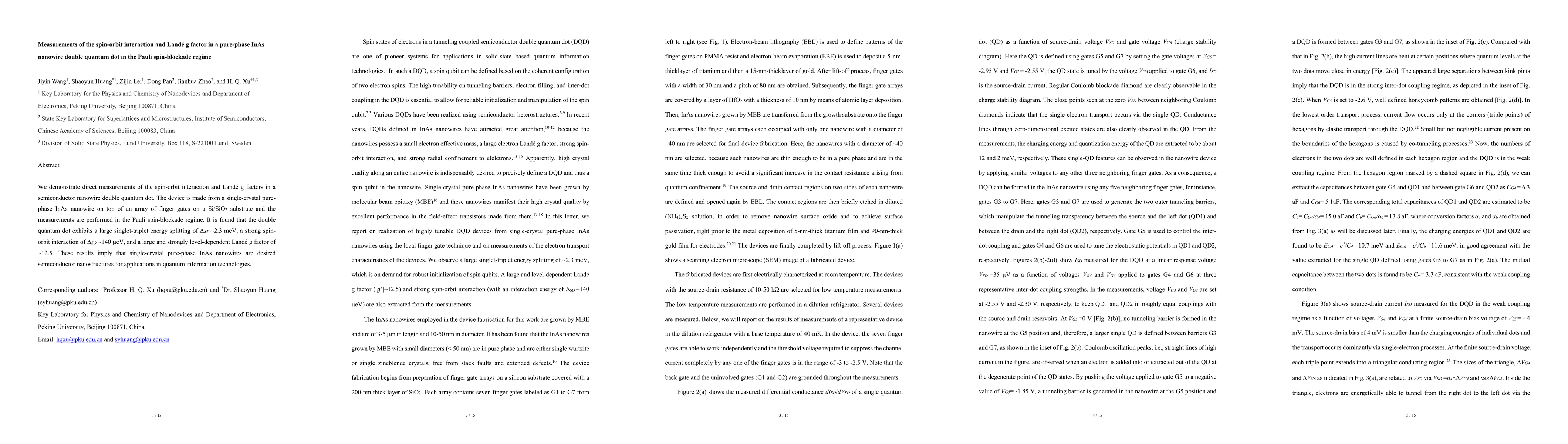 This study measures spin-orbit interaction and Landé g factor in a pure-phase InAs nanowire double quantum dot, finding large singlet-triplet splitting and significant spin-orbit interaction, indicating potential for quantum information technologies.