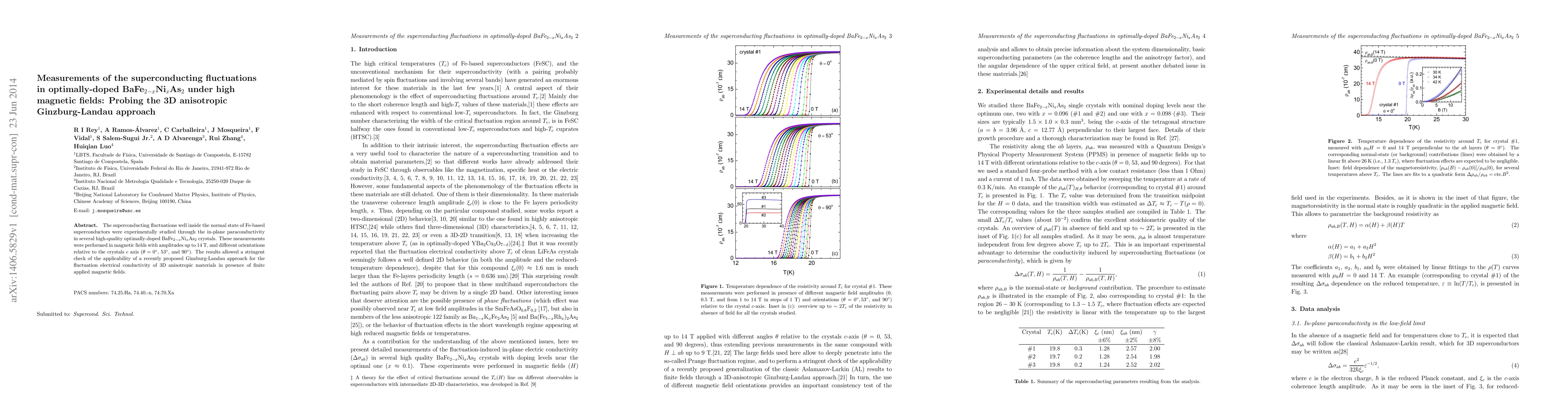This study investigates superconducting fluctuations in optimally-doped BaFe$_{2-x}$Ni$_x$As$_2$ using in-plane paraconductivity measurements under high magnetic fields up to 14 T. The findings validate a 3D anisotropic Ginzburg-Landau approach for fluctuation electrical conductivity in such materials.