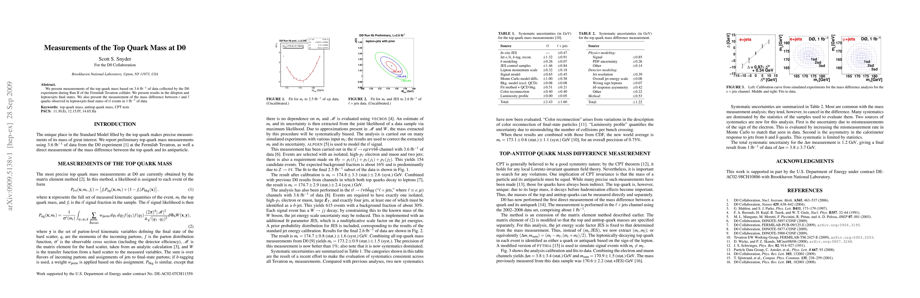 This paper reports top quark mass measurements from the D0 experiment at the Fermilab Tevatron, using 3.6 fb^-1 of data, focusing on dilepton and lepton+jets final states, and also investigates the mass difference between top and anti-top quarks.