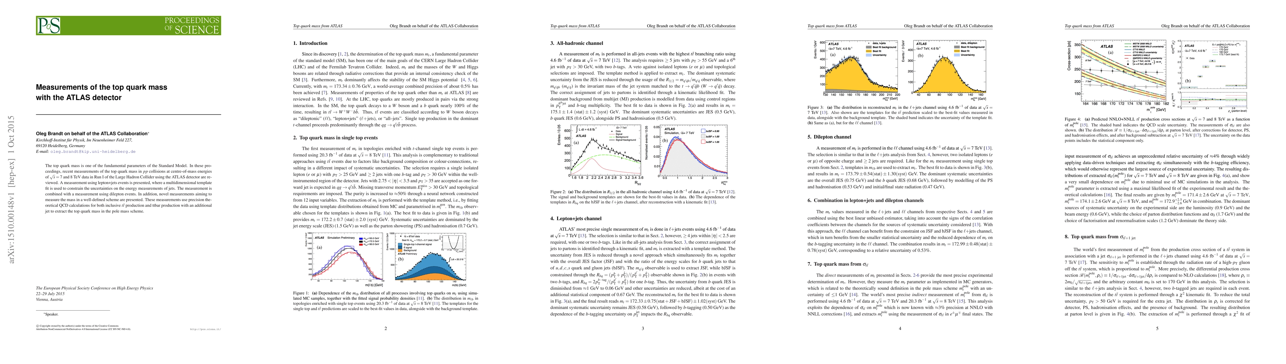 This paper reviews recent measurements of the top quark mass using the ATLAS detector at the LHC, focusing on data from $pp$ collisions at 7 and 8 TeV. It combines results from lepton+jets and dilepton events, employing advanced fitting techniques and precision theoretical calculations to determine the top quark mass in the pole scheme.
