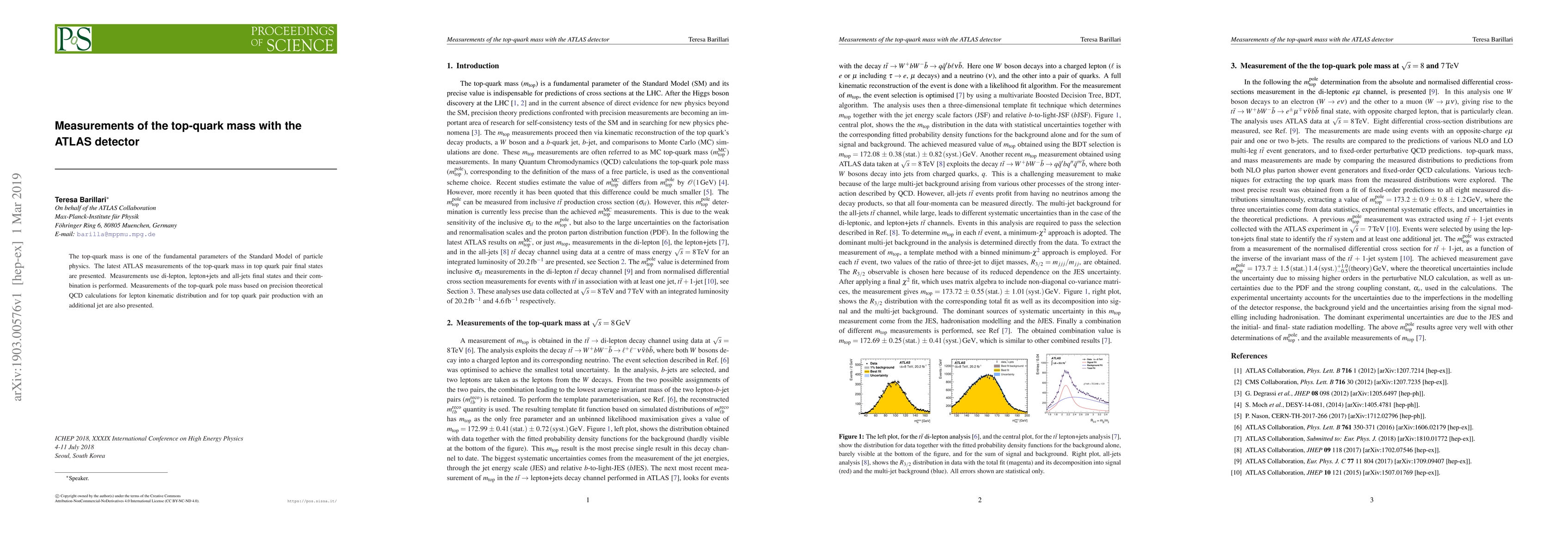 This paper presents the latest ATLAS measurements of the top-quark mass using various final states, including di-lepton, lepton+jets, and all-jets, and combines these results for a precise determination. Additionally, it reports top-quark pole mass measurements based on advanced theoretical QCD calculations.
