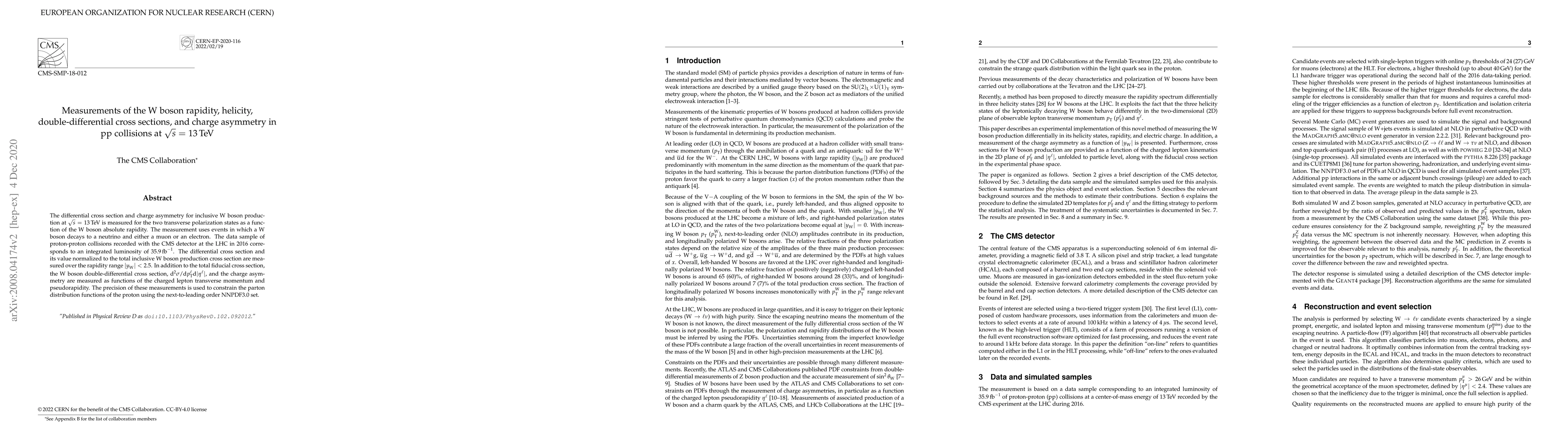 The differential cross section and charge asymmetry for inclusive W boson production at $\sqrt{s} =$ 13 TeV is measured for the two transverse polarization states as a function of the W boson absolute rapidity. The measurement uses events in which a W boson decays to a neutrino and either a muon or an electron. The data sample of proton-proton collisions recorded with the CMS detector at the LHC in 2016 corresponds to an integrated luminosity of 35.9 fb$^{-1}$. The differential cross section and its value normalized to the total inclusive W boson production cross section are measured over the rapidity range $|y_\mathrm{W}|$ $\lt$ 2.5. In addition to the total fiducial cross section, the W boson double-differential cross section, d$^2\sigma$/d$p^\ell_\mathrm{T}$d$|\eta|$ and the charge asymmetry are measured as functions of the charged lepton transverse momentum and pseudorapidity. The precision of these measurements is used to constrain the parton distribution functions of the proton using the next-to-leading order NNPDF3.0 set.