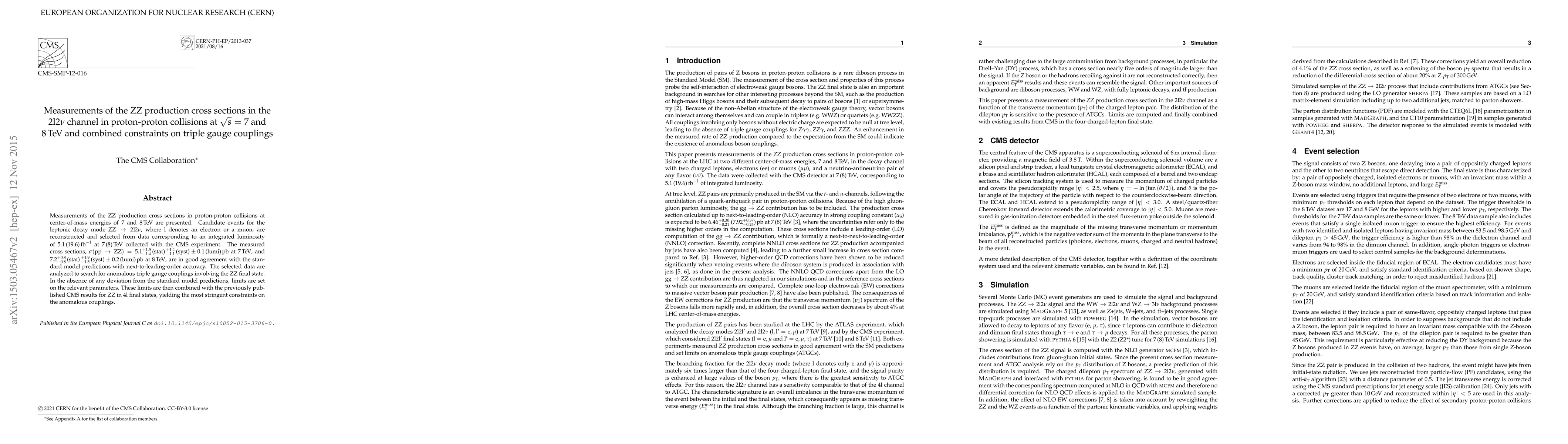This paper reports measurements of ZZ production cross sections at 7 and 8 TeV in proton-proton collisions using the CMS experiment, finding results consistent with standard model predictions. It also sets stringent limits on anomalous triple gauge couplings in the absence of deviations from the standard model.