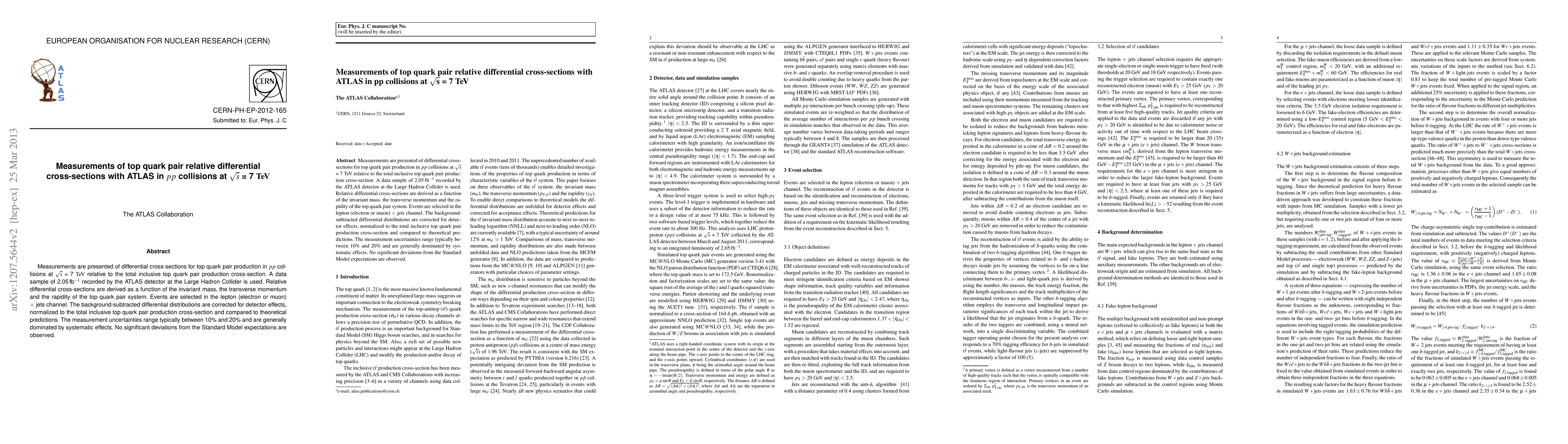 This paper reports on differential cross-sections for top quark pair production in proton-proton collisions at 7 TeV, measured relative to the total inclusive cross-section using the ATLAS detector. The results show no significant deviations from Standard Model predictions, with uncertainties typically between 10% and 20%.