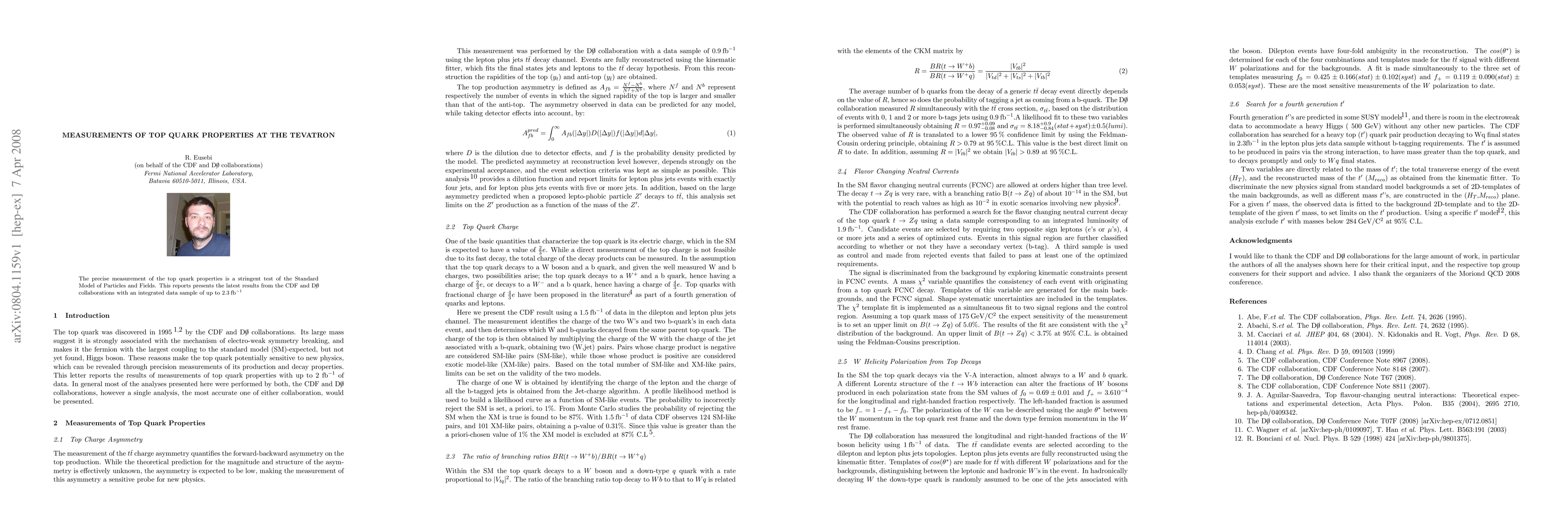 The precise measurement of the top quark properties is a stringent test of the Standard Model of Particles and Fields. This reports presents the latest results from the CDF and D0 collaborations with an integrated data sample of up to 2.3/fb.