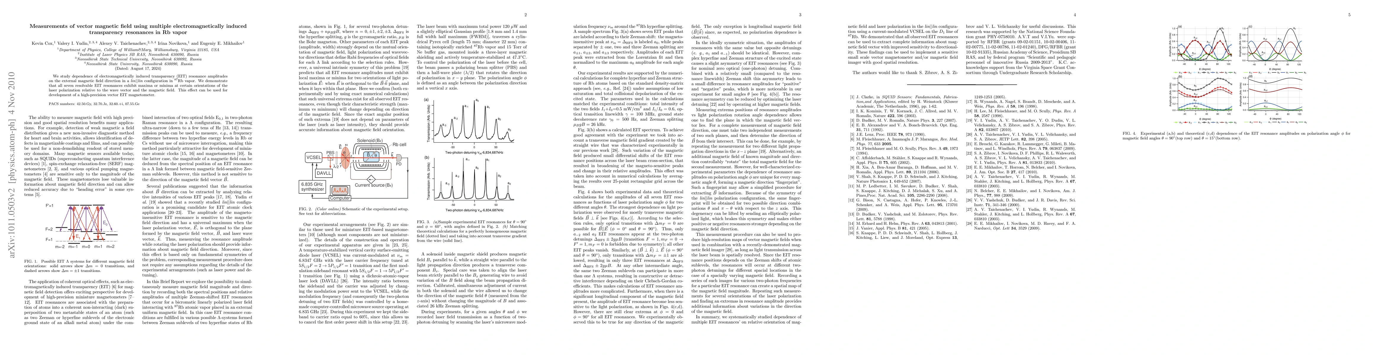 This paper investigates the transmission resonances in 87Rb vapor under electromagnetically induced transparency, finding that different orientations of an external magnetic field cause all seven EIT resonances to exhibit maxima or minima at specific laser polarization directions. This discovery enables the development of a high-precision vector magnetometer based on EIT.