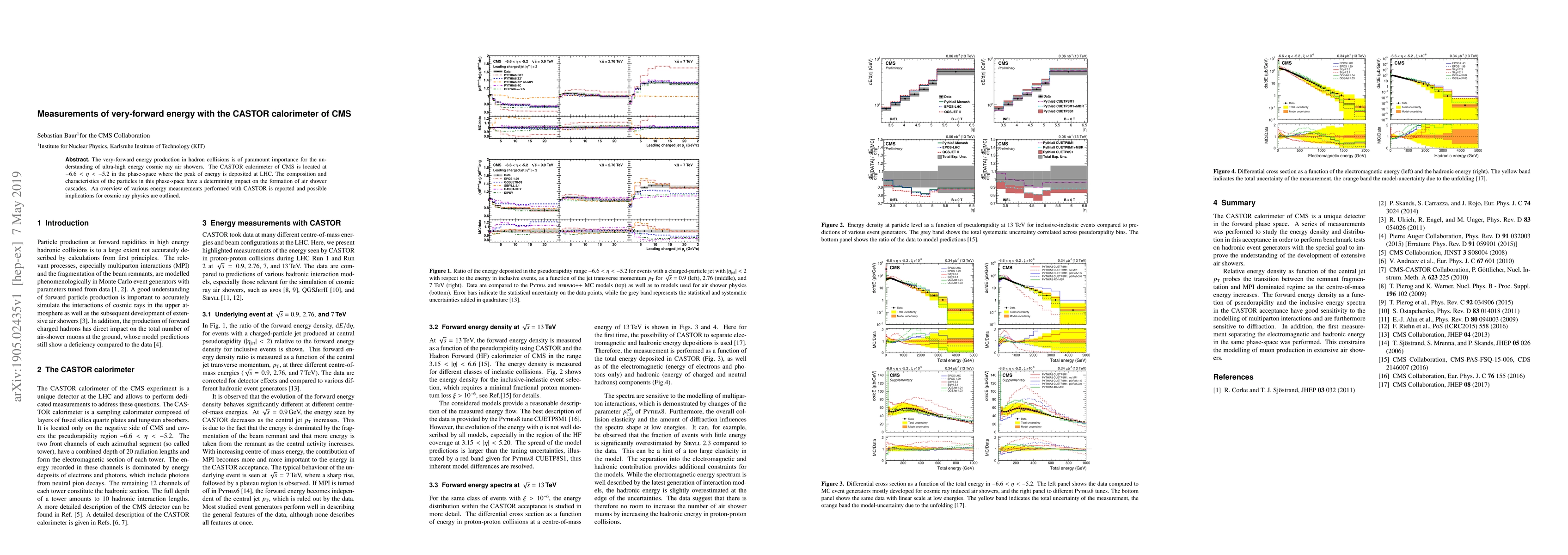 This paper reports on measurements of very-forward energy using the CASTOR calorimeter in the CMS detector, which is crucial for understanding ultra-high energy cosmic ray air showers. The study highlights the implications of these measurements for cosmic ray physics.