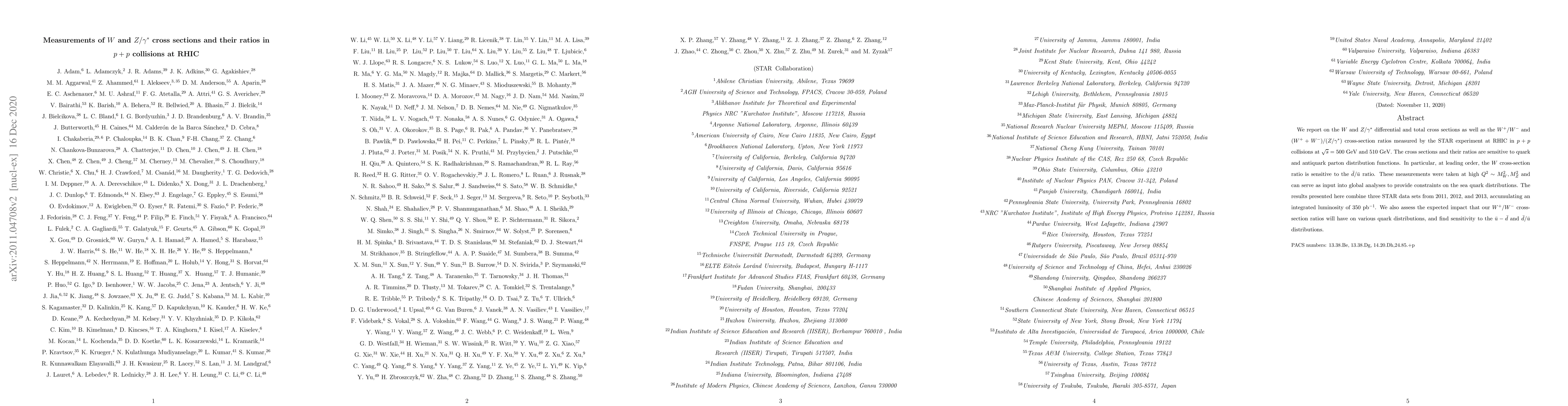 This paper reports on measurements of $W$ and $Z/\gamma^*$ cross sections from $p+p$ collisions at RHIC, revealing insights into quark and antiquark parton distribution functions, particularly the $\bar{d}/\bar{u}$ ratio, and combining data from 2011-2013 to enhance global analyses. The study also assesses the impact of $W^+/W^-$ ratios on quark distributions.