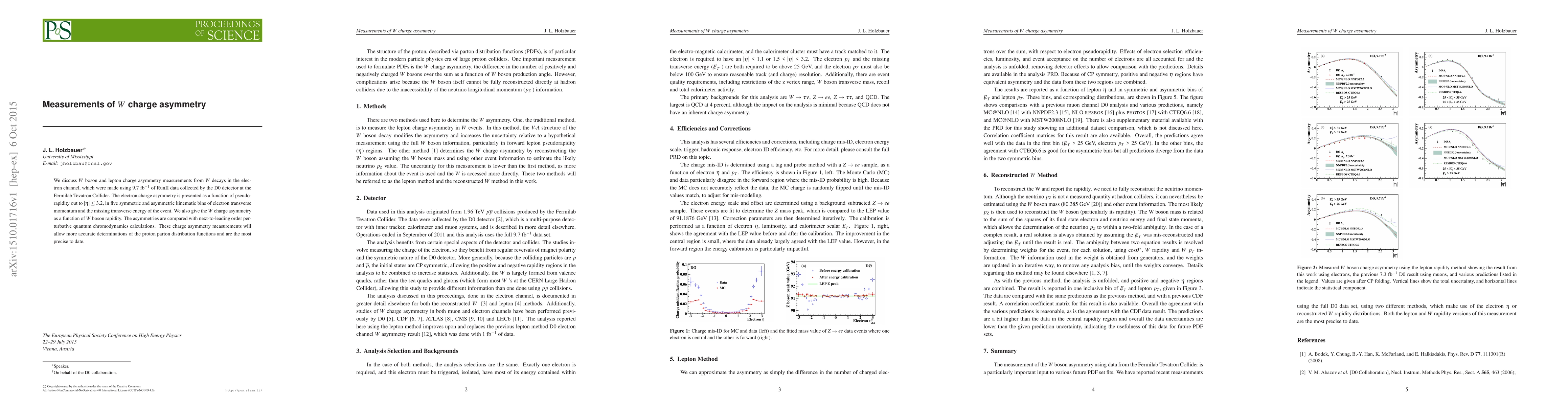 We discuss W boson and lepton charge asymmetry measurements from W decays in the electron channel, which were made using 9.7 fb$^{-1}$ of RunII data collected by the D0 detector at the Fermilab Tevatron Collider. The electron charge asymmetry is presented as a function of pseudo-rapidity out to |$\eta$| $\le$ 3.2, in five symmetric and asymmetric kinematic bins of electron transverse momentum and the missing transverse energy of the event. We also give the W charge asymmetry as a function of W boson rapidity. The asymmetries are compared with next-to-leading order perturbative quantum chromodynamics calculations. These charge asymmetry measurements will allow more accurate determinations of the proton parton distribution functions and are the most precise to date.
