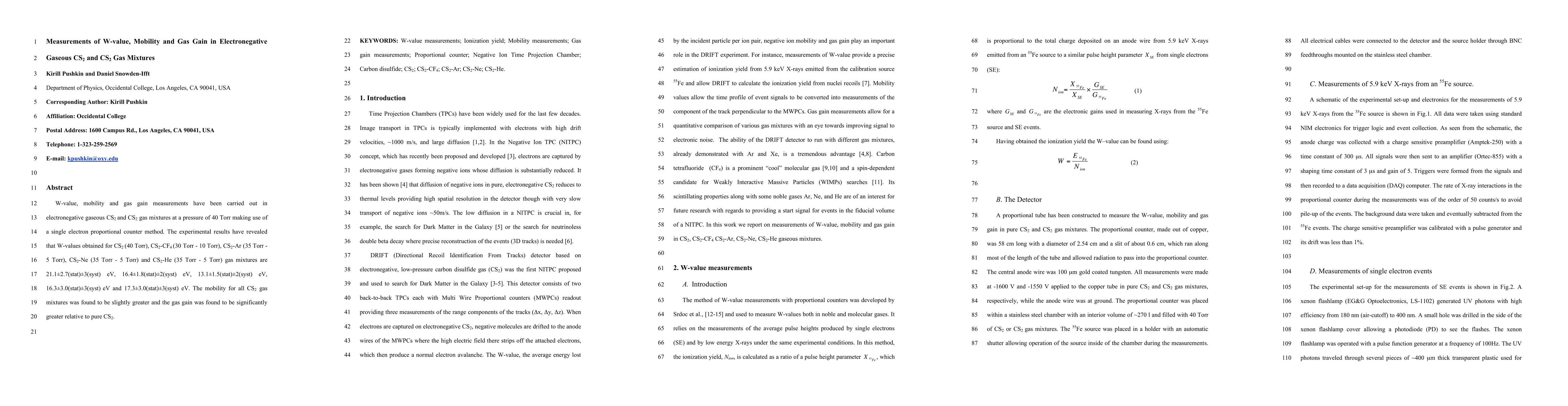 Researchers measured W-value, mobility, and gas gain in CS2 gas mixtures with various additives, finding that the additives increased gas gain while slightly improving mobility.