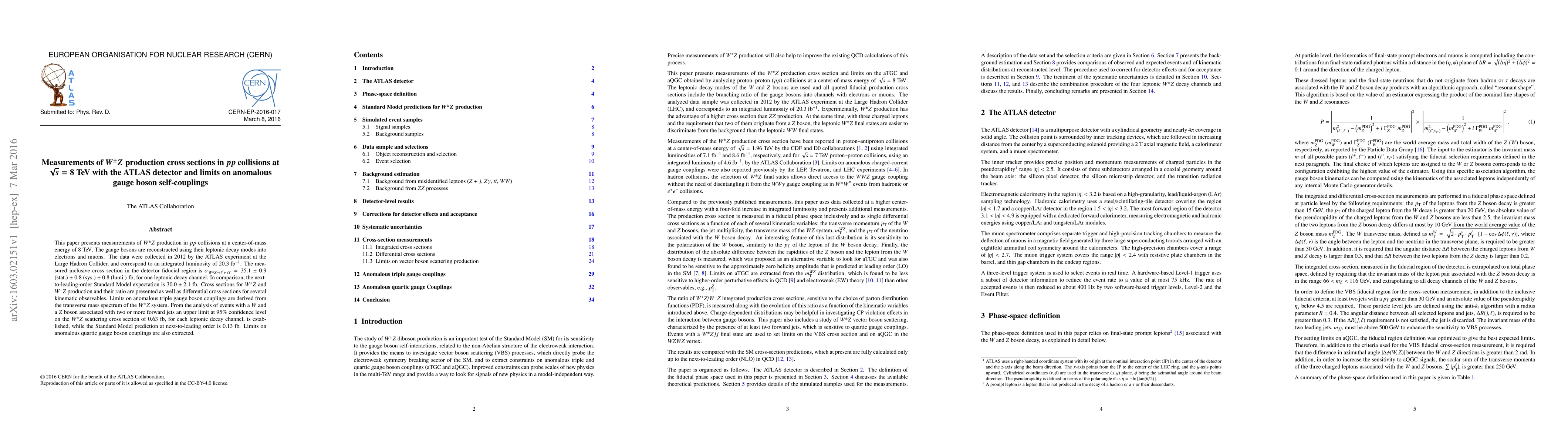This paper reports measurements of $W^\pm Z$ production in $pp$ collisions at 8 TeV using the ATLAS detector, finding an inclusive cross section of $35.1 \pm$ 0.9 fb, and sets limits on anomalous gauge boson self-couplings, establishing an upper limit of 0.63 fb for the $W^\pm Z$ scattering cross section.