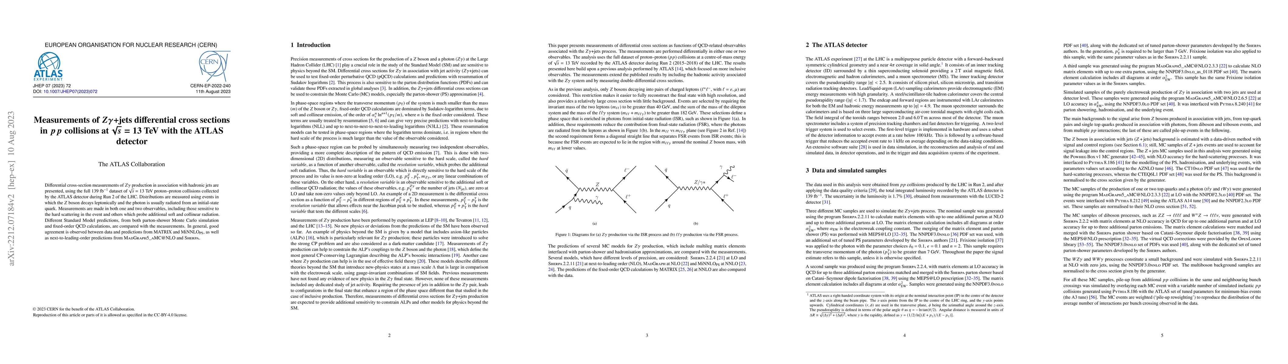 This paper presents differential cross-section measurements for $Z\gamma+$jets production in $pp$ collisions at $\sqrt{s}=13$ TeV using the ATLAS detector, analyzing a dataset of 139 fb$^{-1}$. The study compares various Standard Model predictions with the data, finding good agreement with several theoretical calculations.