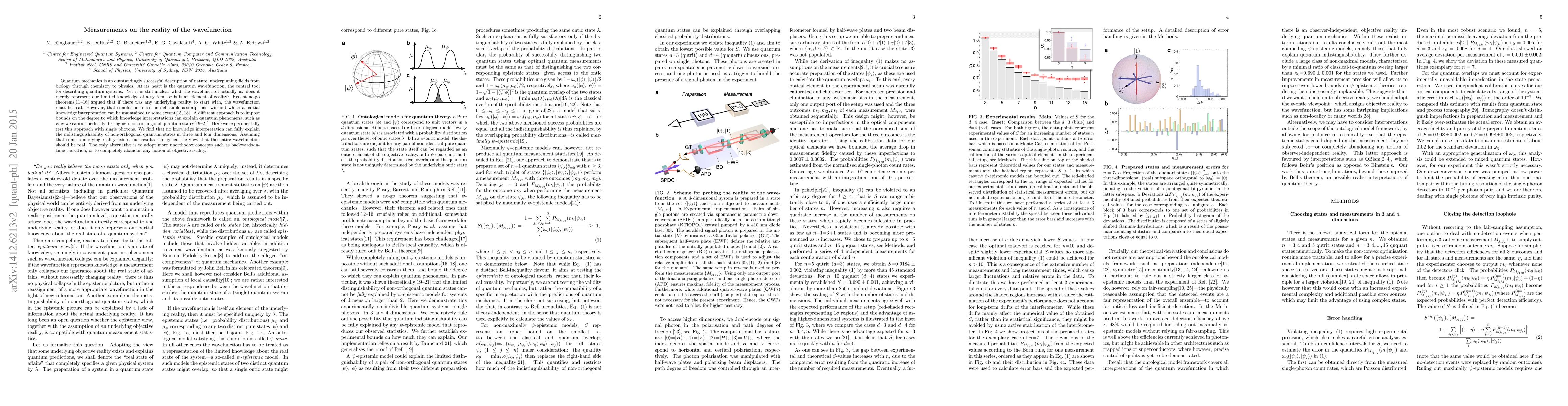 Quantum mechanics is an outstandingly successful description of nature, underpinning fields from biology through chemistry to physics. At its heart is the quantum wavefunction, the central tool for describing quantum systems. Yet it is still unclear what the wavefunction actually is: does it merely represent our limited knowledge of a system, or is it an element of reality? Recent no-go theorems argued that if there was any underlying reality to start with, the wavefunction must be real. However, that conclusion relied on debatable assumptions, without which a partial knowledge interpretation can be maintained to some extent. A different approach is to impose bounds on the degree to which knowledge interpretations can explain quantum phenomena, such as why we cannot perfectly distinguish non-orthogonal quantum states. Here we experimentally test this approach with single photons. We find that no knowledge interpretation can fully explain the indistinguishability of non-orthogonal quantum states in three and four dimensions. Assuming that some underlying reality exists, our results strengthen the view that the entire wavefunction should be real. The only alternative is to adopt more unorthodox concepts such as backwards-in-time causation, or to completely abandon any notion of objective reality.