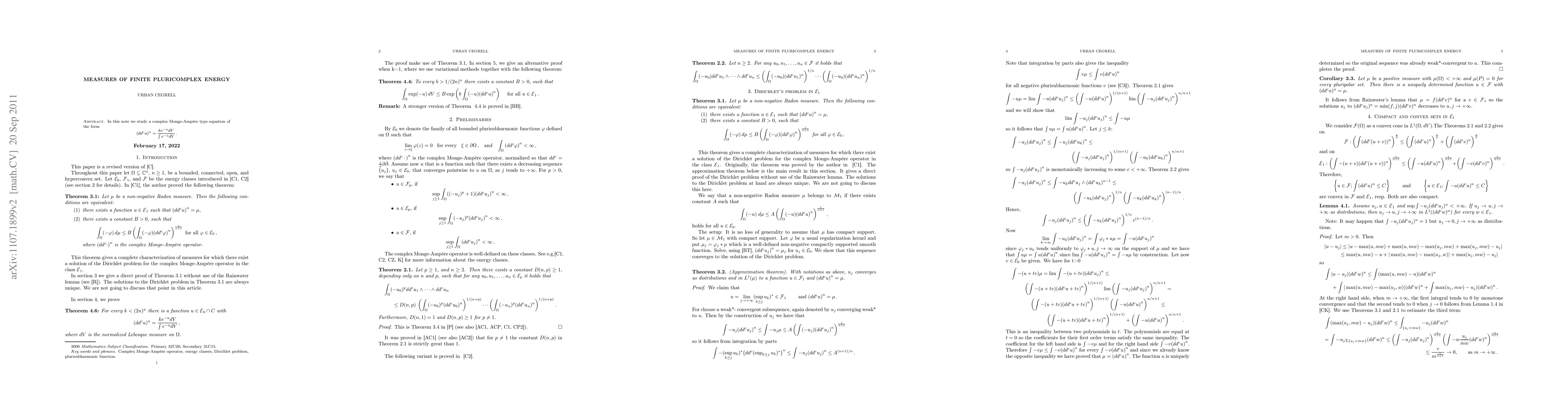 In this note we study a complex Monge-Amp\`{e}re type equation of the form (dd^cu)^n = \frac {ke^{-u}dV}{\int e^{-u}dV}\,