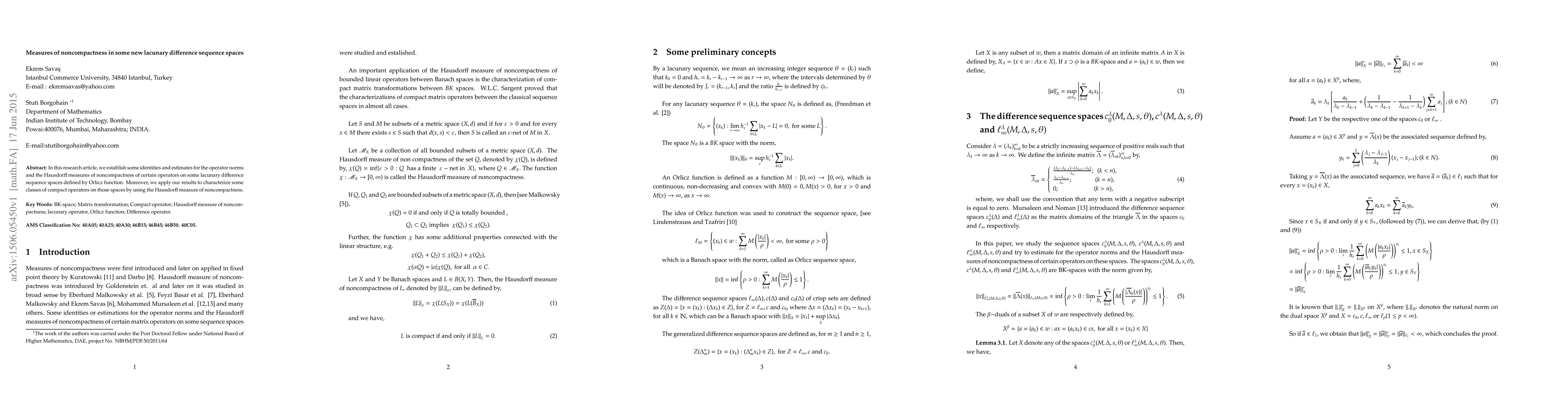 This paper establishes identities and estimates for operator norms and Hausdorff measures of noncompactness in lacunary difference sequence spaces defined by Orlicz functions, and uses these measures to characterize classes of compact operators within those spaces.