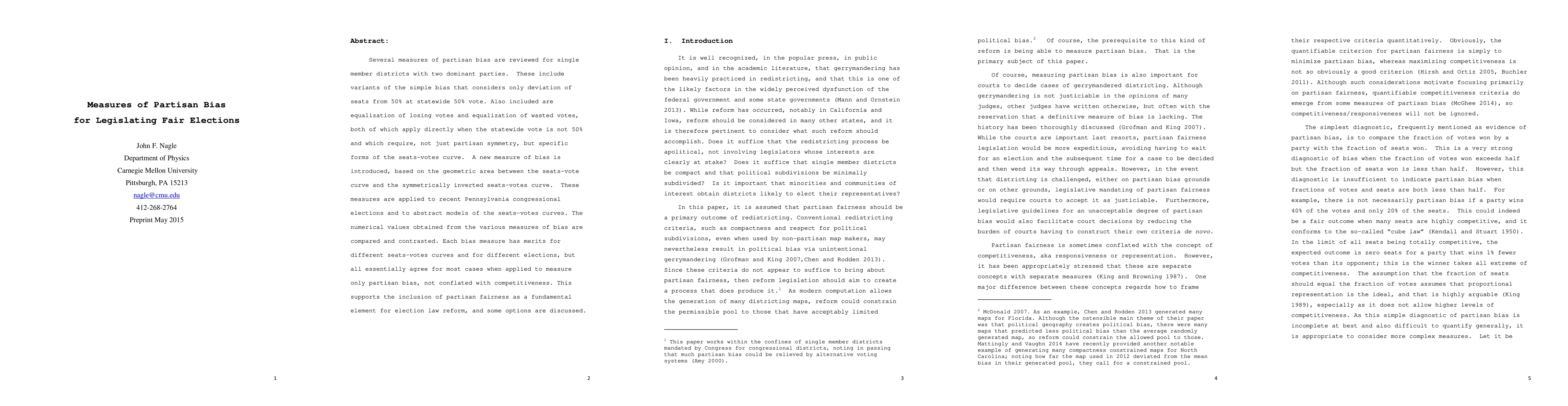 Researchers developed measures of partisan bias for legislating fair elections, analyzing data from Pennsylvania congressional elections and abstract models. They found that different measures agree on partisan fairness when applied to non-competitive elections.