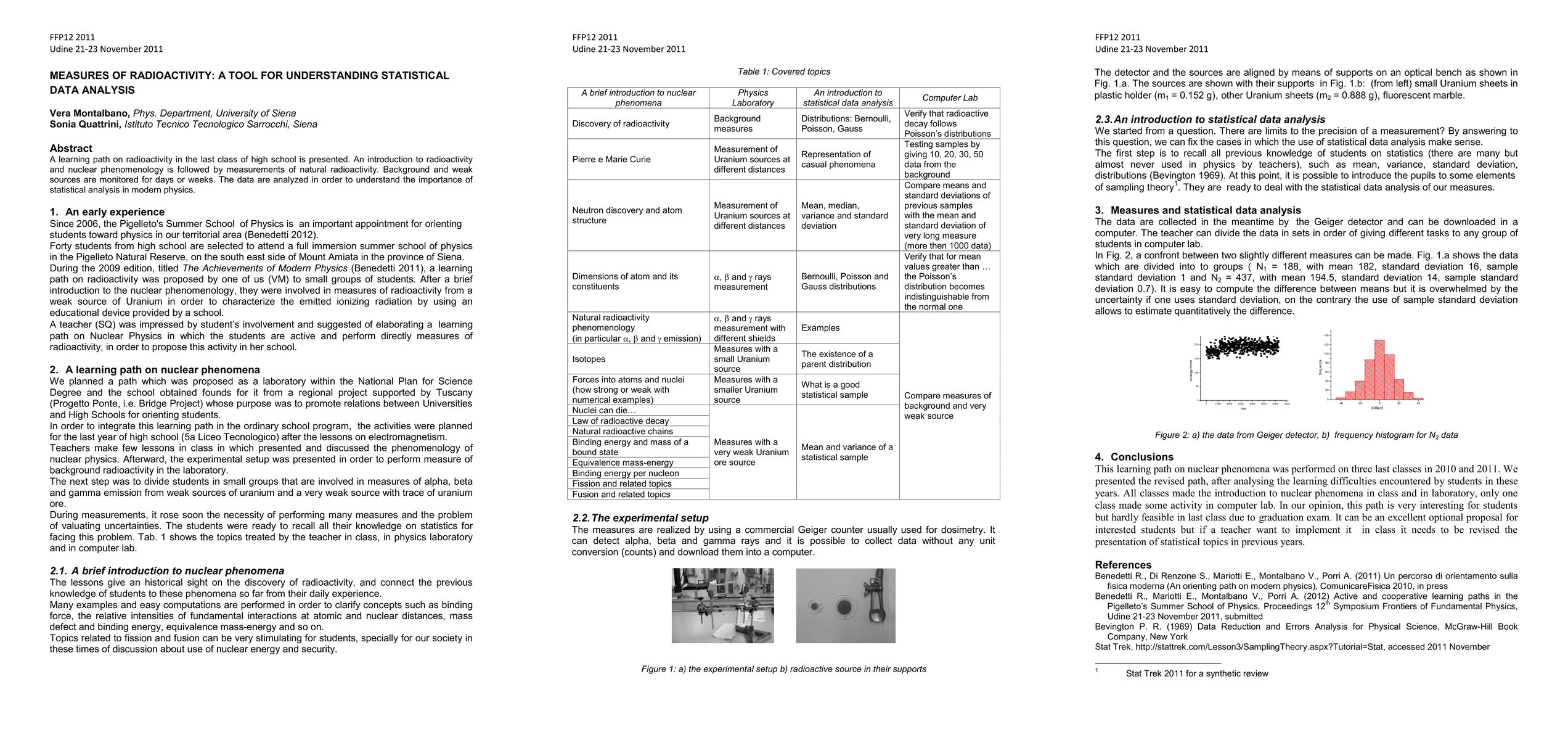 A learning path on radioactivity in the last class of high school is presented. An introduction to radioactivity and nuclear phenomenology is followed by measurements of natural radioactivity. Background and weak sources are monitored for days or weeks. The data are analyzed in order to understand the importance of statistical analysis in modern physics.