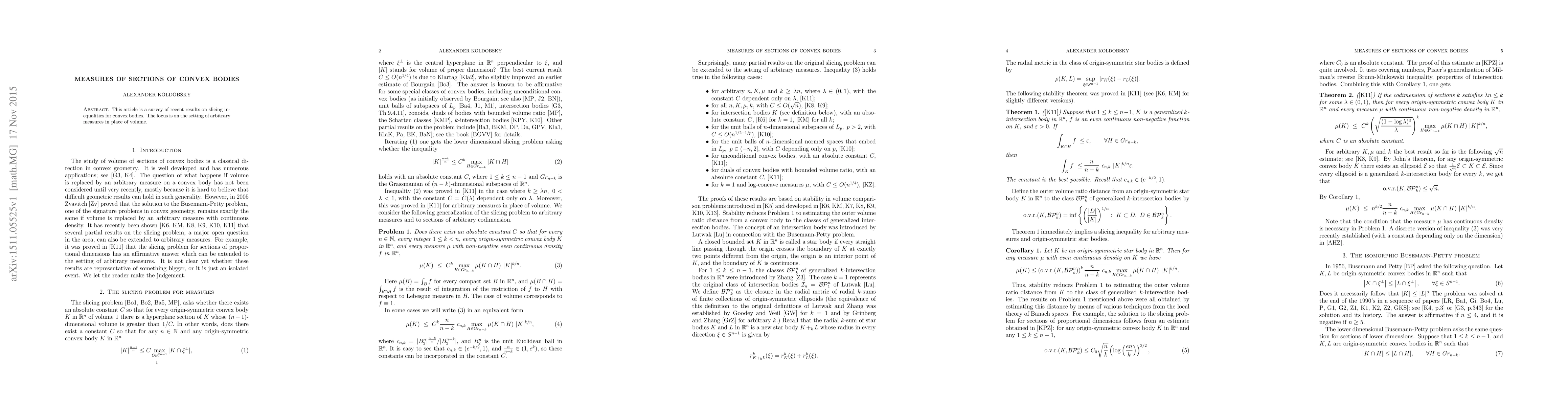 This paper surveys recent advancements in slicing inequalities for convex bodies, emphasizing the use of arbitrary measures instead of traditional volume. It highlights significant results and methodologies in this evolving field.