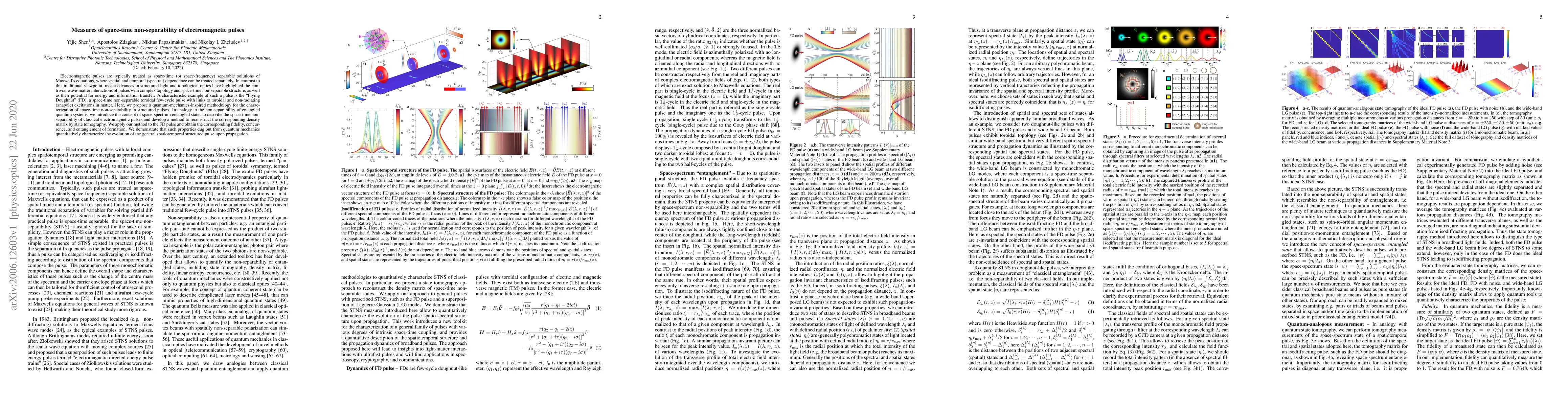 Electromagnetic pulses are typically treated as space-time (or space-frequency) separable solutions of Maxwell's equations, where spatial and temporal (spectral) dependence can be treated separately. In contrast to this traditional viewpoint, recent advances in structured light and topological optics have highlighted the non-trivial wave-matter interactions of pulses with complex topology and space-time non-separable structure, as well as their potential for energy and information transfer. A characteristic example of such a pulse is the "Flying Doughnut" (FD), a space-time non-separable toroidal few-cycle pulse with links to toroidal and non-radiating (anapole) excitations in matter. Here, we propose a quantum-mechanics-inspired methodology for the characterization of space-time non-separability in structured pulses. In analogy to the non-separability of entangled quantum systems, we introduce the concept of space-spectrum entangled states to describe the space-time non-separability of classical electromagnetic pulses and develop a method to reconstruct the corresponding density matrix by state tomography. We apply our method to the FD pulse and obtain the corresponding fidelity, concurrence, and entanglement of formation. We demonstrate that such properties dug out from quantum mechanics quantitatively characterize the evolution of the general spatiotemporal structured pulse upon propagation.