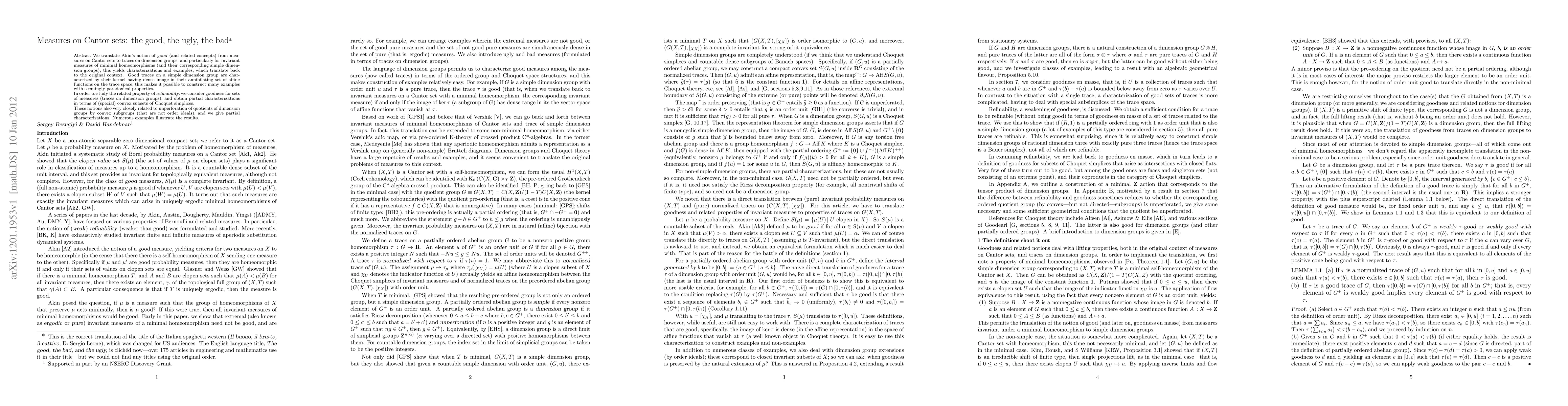 We translate Akin's notion of {\it good} (and related concepts) from measures on Cantor sets to traces on dimension groups, and particularly for invariant measures of minimal homeomorphisms (and their corresponding simple dimension groups), this yields characterizations and examples, which translate back to the original context. Good traces on a simple dimension group are characterized by their kernel having dense image in their annihilating set of affine functions on the trace space; this makes it possible to construct many examples with seemingly paradoxical properties. In order to study the related property of {\it refinability,} we consider goodness for sets of measures (traces on dimension groups), and obtain partial characterizations in terms of (special) convex subsets of Choquet simplices. These notions also very closely related to unperforation of quotients of dimension groups by convex subgroups (that are not order ideals), and we give partial characterizations. Numerous examples illustrate the results.