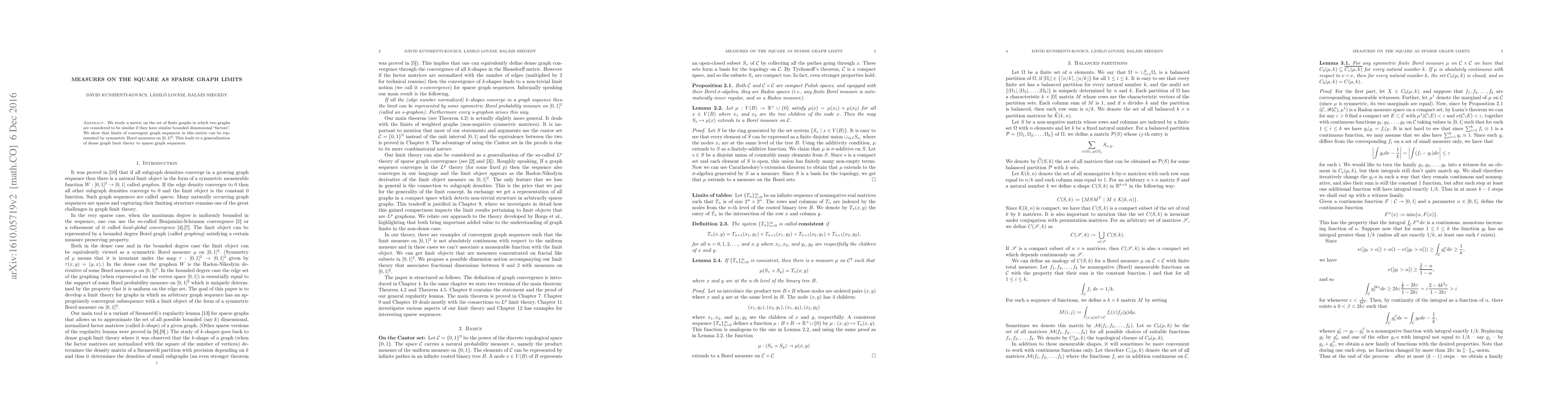 We study a metric on the set of finite graphs in which two graphs are considered to be similar if they have similar bounded dimensional "factors". We show that limits of convergent graph sequences in this metric can be represented by symmetric Borel measures on $[0,1]^2$. This leads to a generalization of dense graph limit theory to sparse graph sequences.
