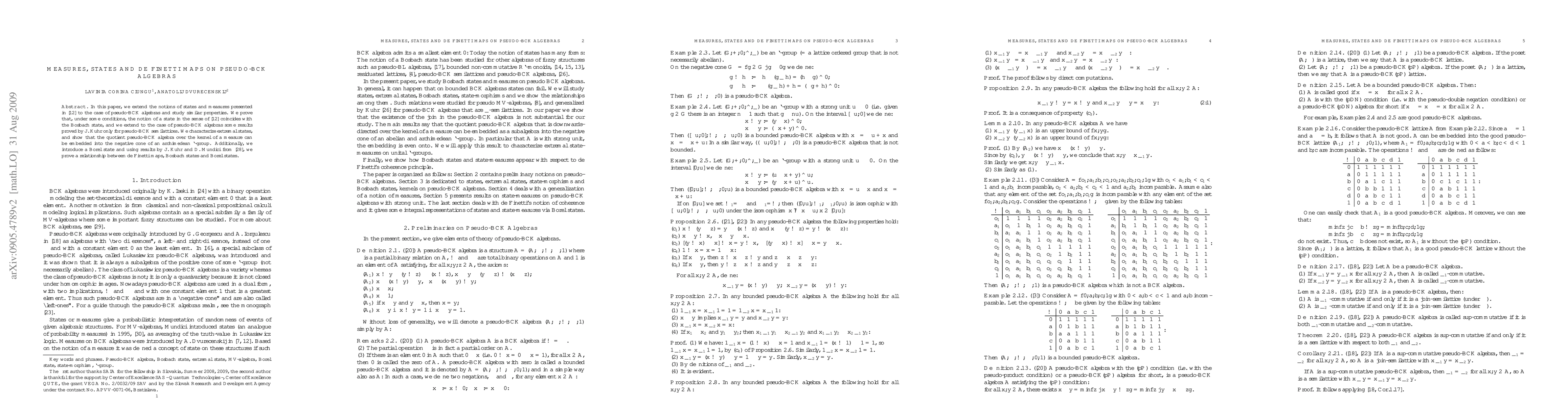 This paper extends concepts of states and measures from pseudo-BCK algebras and investigates their properties, proving the equivalence of certain states and embedding quotient pseudo-BCK algebras into the negative cone of an archimedean $\ell$-group. It also establishes a relationship between de Finetti maps, Bosbach states, and Borel states.