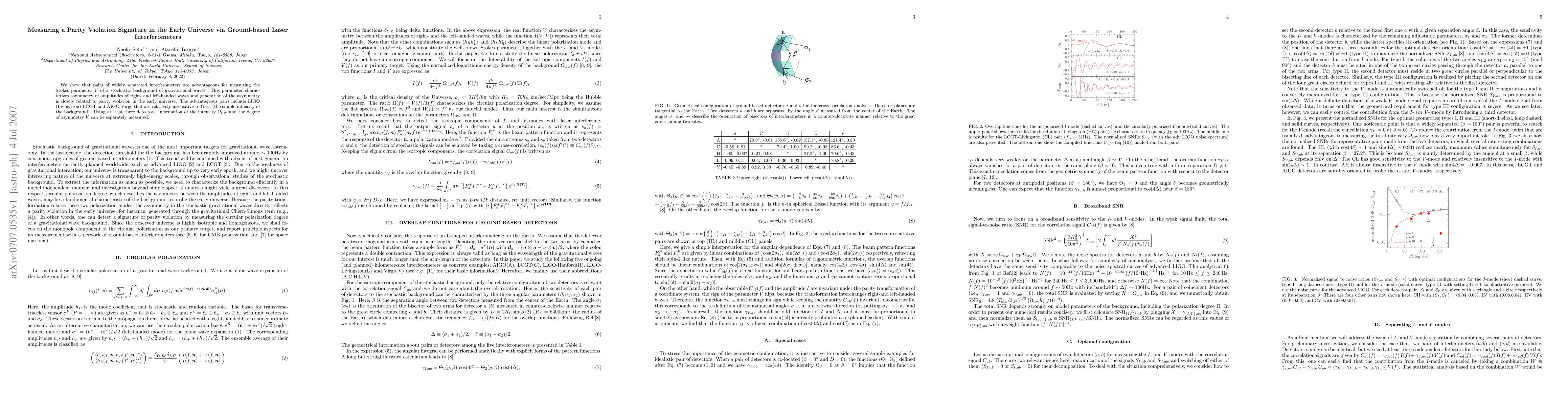 We show that pairs of widely separated interferometers are advantageous for measuring the Stokes parameter V of a stochastic background of gravitational waves. This parameter characterizes asymmetry of amplitudes of right- and left-handed waves and generation of the asymmetry is closely related to parity violation in the early universe. The advantageous pairs include LIGO(Livingston)-LCGT and AIGO-Virgo that are relatively insensitive to Omega_GW (the simple intensity of the background). Using at least three detectors, information of the intensity Omega_GW and the degree of asymmetry V can be separately measured.