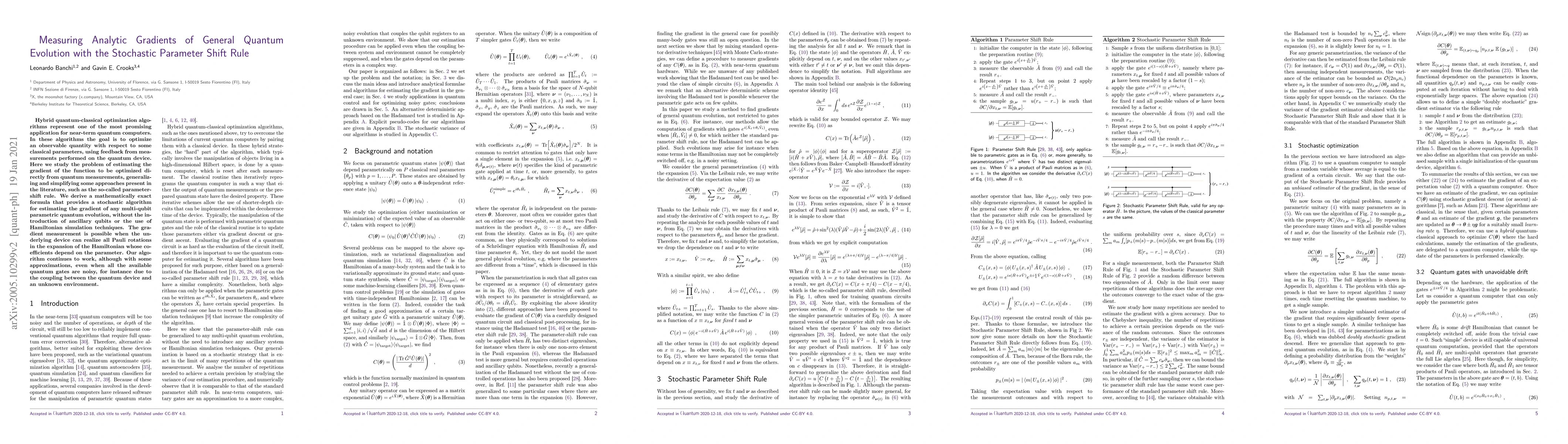 Hybrid quantum-classical optimization algorithms represent one of the most promising application for near-term quantum computers. In these algorithms the goal is to optimize an observable quantity with respect to some classical parameters, using feedback from measurements performed on the quantum device. Here we study the problem of estimating the gradient of the function to be optimized directly from quantum measurements, generalizing and simplifying some approaches present in the literature, such as the so-called parameter-shift rule. We derive a mathematically exact formula that provides a stochastic algorithm for estimating the gradient of any multi-qubit parametric quantum evolution, without the introduction of ancillary qubits or the use of Hamiltonian simulation techniques. The gradient measurement is possible when the underlying device can realize all Pauli rotations in the expansion of the Hamiltonian whose coefficients depend on the parameter. Our algorithm continues to work, although with some approximations, even when all the available quantum gates are noisy, for instance due to the coupling between the quantum device and an unknown environment.