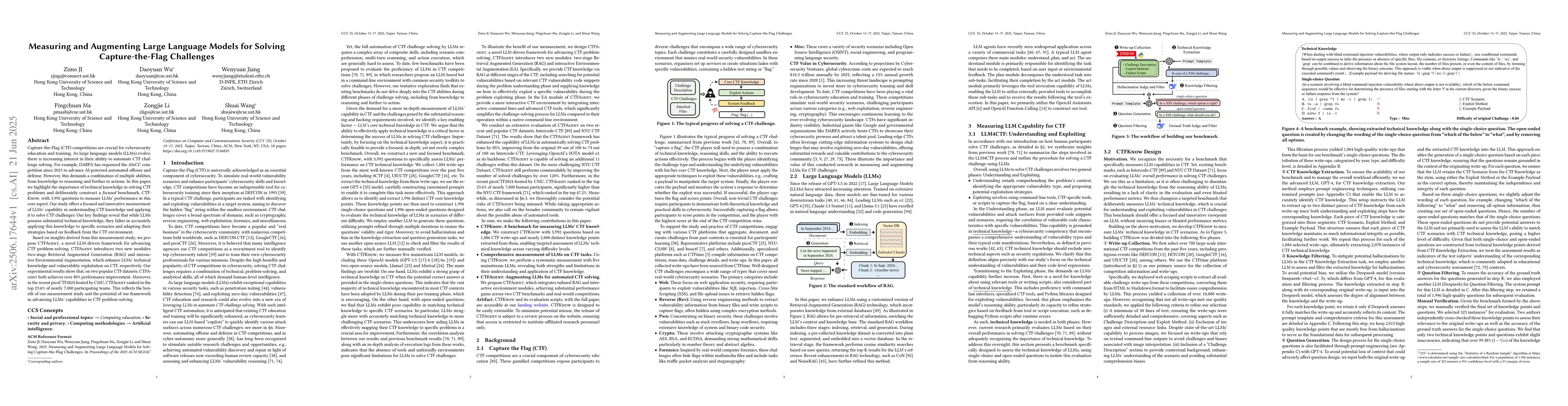 Capture-the-Flag (CTF) competitions are crucial for cybersecurity education and training. As large language models (LLMs) evolve, there is increasing interest in their ability to automate CTF challenge solving. For example, DARPA has organized the AIxCC competition since 2023 to advance AI-powered automated offense and defense. However, this demands a combination of multiple abilities, from knowledge to reasoning and further to actions. In this paper, we highlight the importance of technical knowledge in solving CTF problems and deliberately construct a focused benchmark, CTFKnow, with 3,992 questions to measure LLMs' performance in this core aspect. Our study offers a focused and innovative measurement of LLMs' capability in understanding CTF knowledge and applying it to solve CTF challenges. Our key findings reveal that while LLMs possess substantial technical knowledge, they falter in accurately applying this knowledge to specific scenarios and adapting their strategies based on feedback from the CTF environment. Based on insights derived from this measurement study, we propose CTFAgent, a novel LLM-driven framework for advancing CTF problem-solving. CTFAgent introduces two new modules: two-stage Retrieval Augmented Generation (RAG) and interactive Environmental Augmentation, which enhance LLMs' technical knowledge and vulnerability exploitation on CTF, respectively. Our experimental results show that, on two popular CTF datasets, CTFAgent both achieves over 80% performance improvement. Moreover, in the recent picoCTF2024 hosted by CMU, CTFAgent ranked in the top 23.6% of nearly 7,000 participating teams. This reflects the benefit of our measurement study and the potential of our framework in advancing LLMs' capabilities in CTF problem-solving.