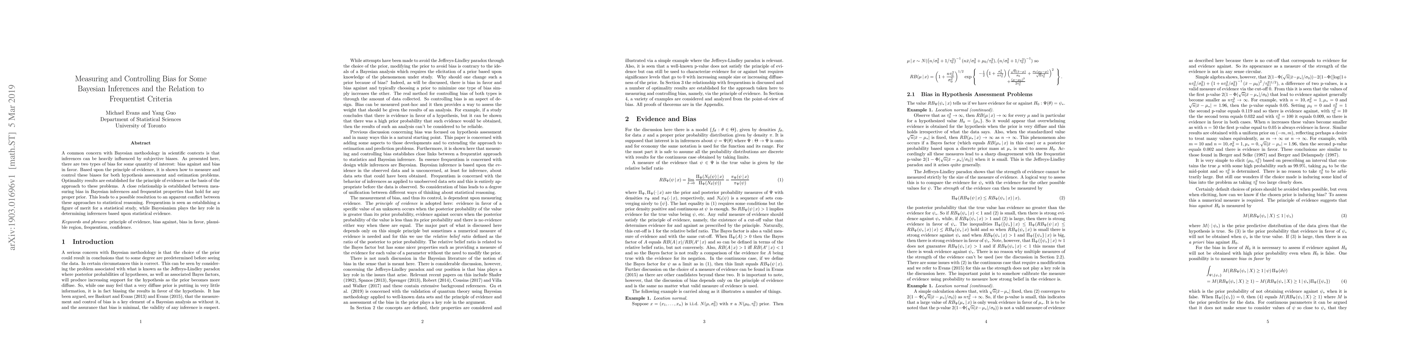 A common concern with Bayesian methodology in scientific contexts is that inferences can be heavily influenced by subjective biases. As presented here, there are two types of bias for some quantity of interest: bias against and bias in favor. Based upon the principle of evidence, it is shown how to measure and control these biases for both hypothesis assessment and estimation problems. Optimality results are established for the principle of evidence as the basis of the approach to these problems. A close relationship is established between measuring bias in Bayesian inferences and frequentist properties that hold for any proper prior. This leads to a possible resolution to an apparent conflict between these approaches to statistical reasoning. Frequentism is seen as establishing a figure of merit for a statistical study, while Bayesianism plays the key role in determining inferences based upon statistical evidence.