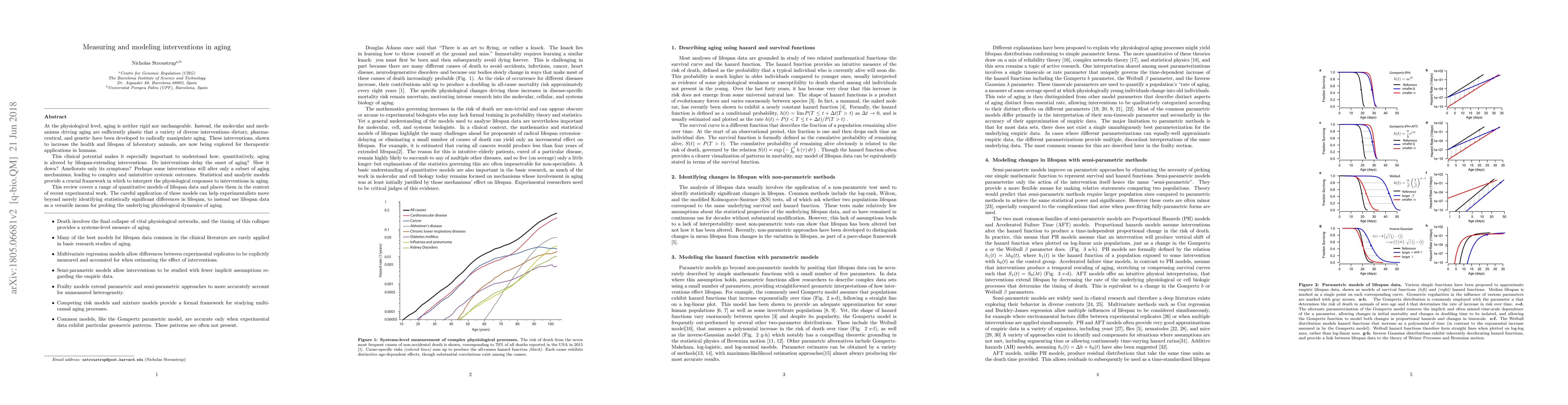 At the physiological level, aging is neither rigid nor unchangeable. Instead, the molecular and mechanisms driving aging are sufficiently plastic that a variety of diverse interventions--dietary, pharmaceutical, and genetic--have been developed to radically manipulate aging. These interventions, shown to increase the health and lifespan of laboratory animals, are now being explored for therapeutic applications in humans. This clinical potential makes it especially important to understand how, quantitatively, aging is altered by lifespan-extending interventions. Do interventions delay the onset of aging? Slow it down? Ameliorate only its symptoms? Perhaps some interventions will alter only a subset of aging mechanisms, leading to complex and unintuitive systemic outcomes. Statistical and analytic models provide a crucial framework in which to interpret the physiological responses to interventions in aging. This review covers a range of quantitative models of lifespan data and places them in the context of recent experimental work. The careful application of these models can help experimentalists move beyond merely identifying statistically significant differences in lifespan, to instead use lifespan data as a versatile means for probing the underlying physiological dynamics of aging.