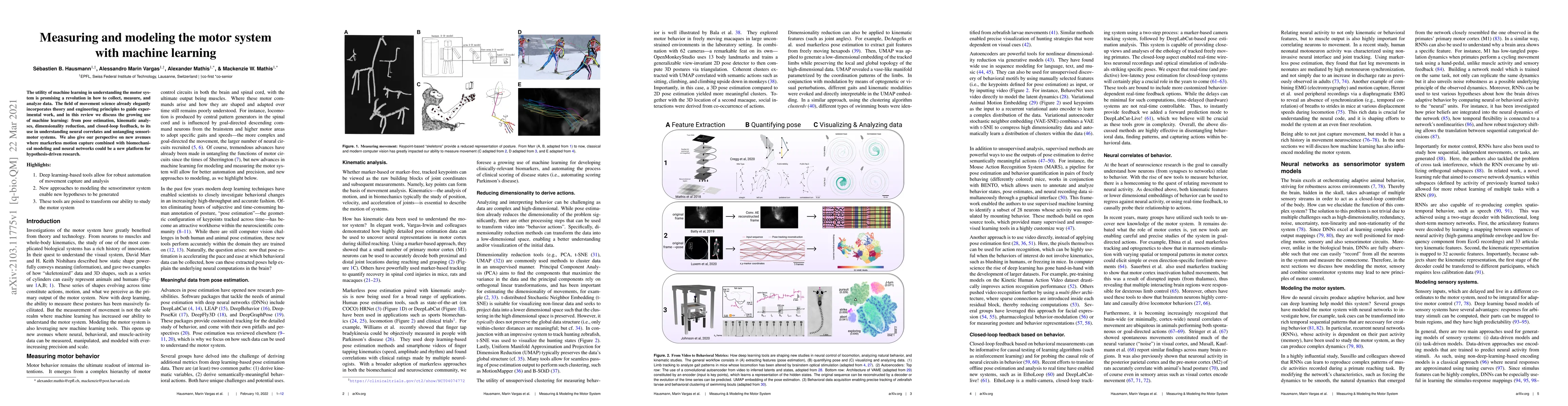The utility of machine learning in understanding the motor system is promising a revolution in how to collect, measure, and analyze data. The field of movement science already elegantly incorporates theory and engineering principles to guide experimental work, and in this review we discuss the growing use of machine learning: from pose estimation, kinematic analyses, dimensionality reduction, and closed-loop feedback, to its use in understanding neural correlates and untangling sensorimotor systems. We also give our perspective on new avenues where markerless motion capture combined with biomechanical modeling and neural networks could be a new platform for hypothesis-driven research.