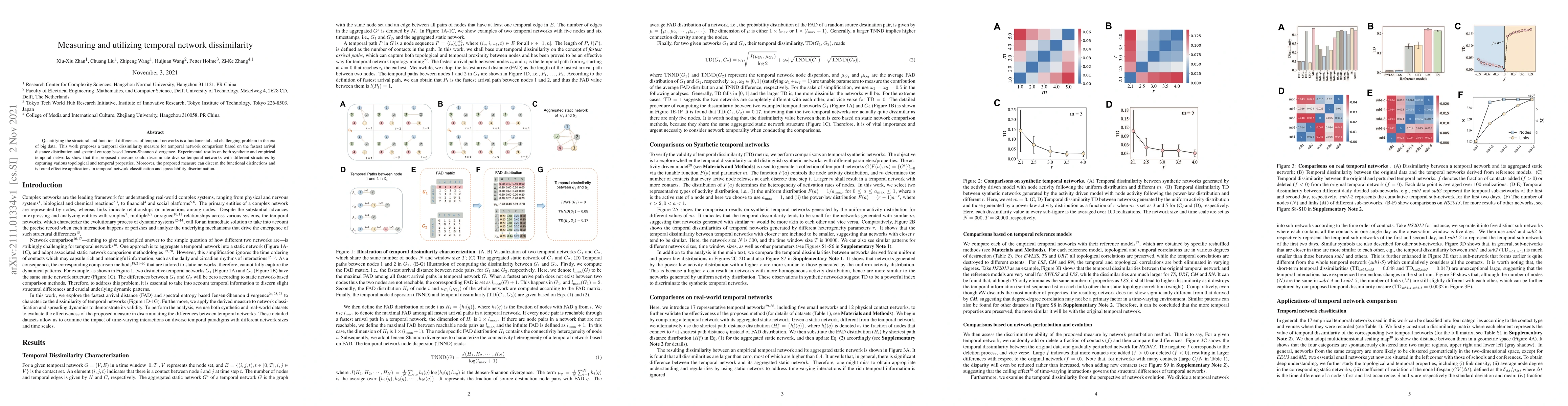 This paper proposes a new temporal dissimilarity measure for comparing temporal networks based on arrival distance distribution and spectral entropy divergence, demonstrating its effectiveness in classifying networks and identifying spreadability differences. Experimental results on synthetic and real-world networks validate its ability to capture structural and functional differences.