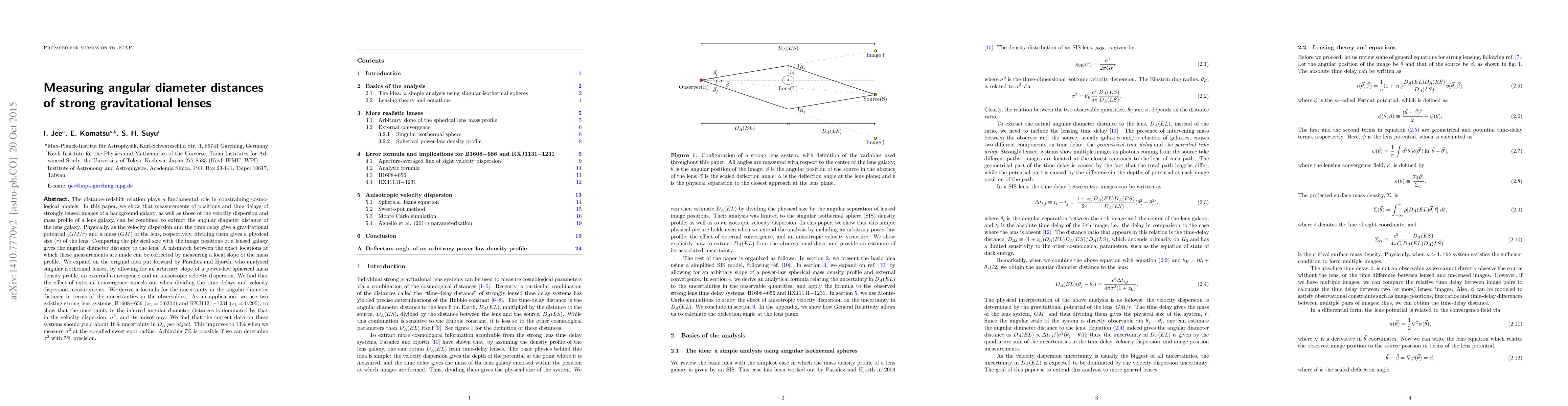 Researchers develop a method to measure the angular diameter distance of strong gravitational lenses using velocity dispersion and time delay measurements, which can provide a more precise estimate than existing methods.