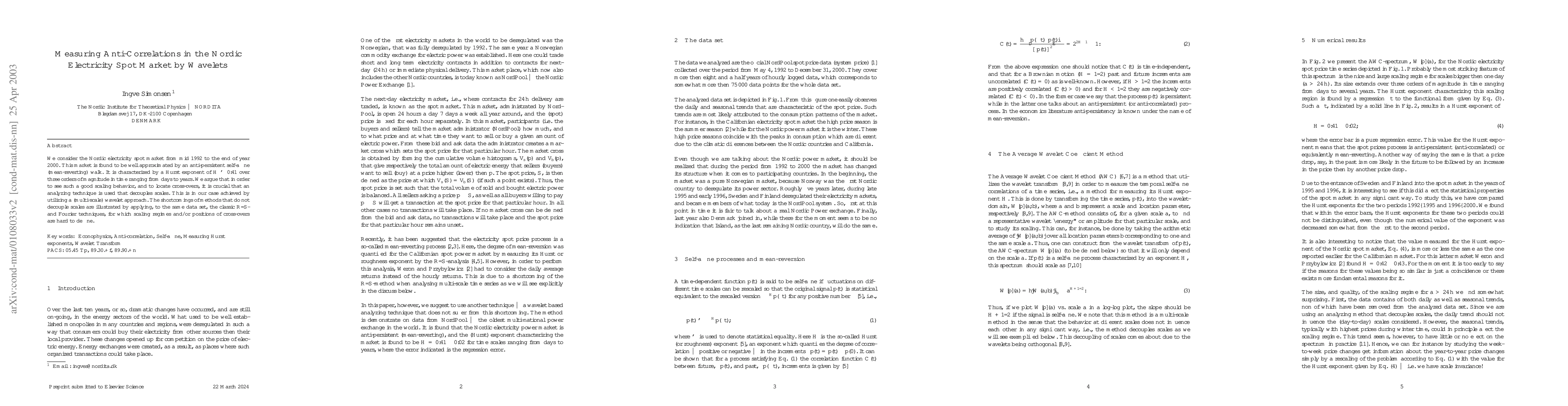 A study uses wavelets to analyze the Nordic electricity spot market from 1992-2000, finding it approximates an anti-persistent self-affine walk with a Hurst exponent of $H geq 0.41$. A multi-scale approach is key to decoupling scales and identifying scaling behavior.