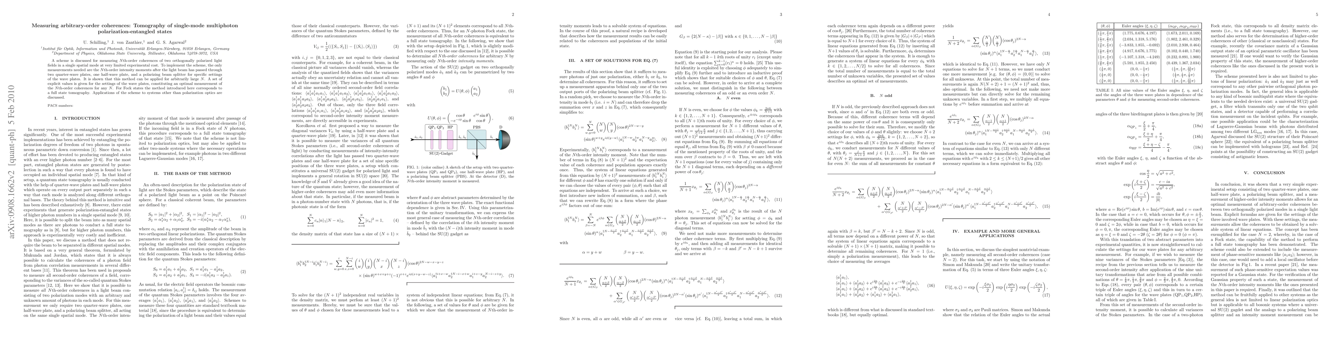 This paper proposes a cost-effective method for measuring Nth-order coherences in single-mode multiphoton polarization-entangled states using intensity moments after specific optical components. The scheme requires minimal experimental setup and can be applied to any large N, providing a full state tomography for Fock states.