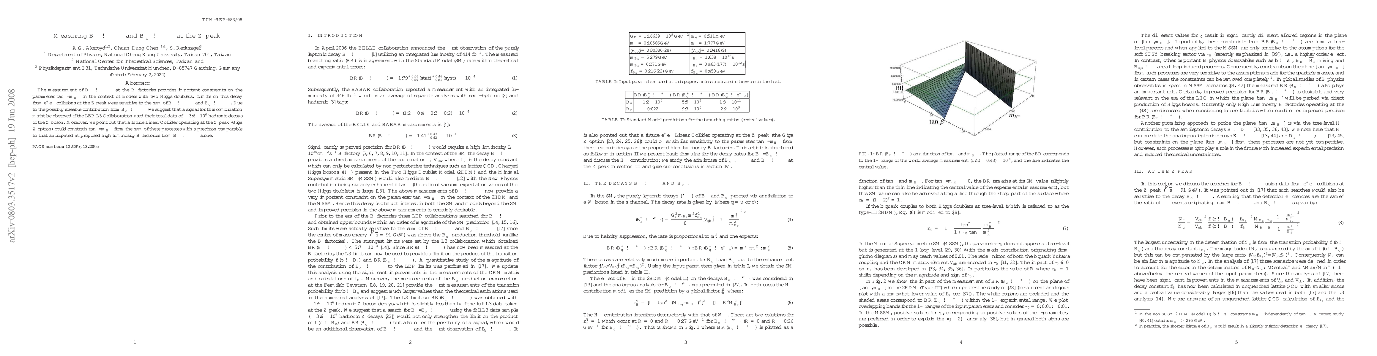 This paper investigates the potential to measure the decay processes B -> tau nu and B_c -> tau nu at the Z peak, suggesting that the LEP L3 Collaboration's data could reveal a signal for their combination. It also highlights the future Giga Z option's potential to constrain the parameter tan beta/m_H^+- with precision comparable to high luminosity B factories.