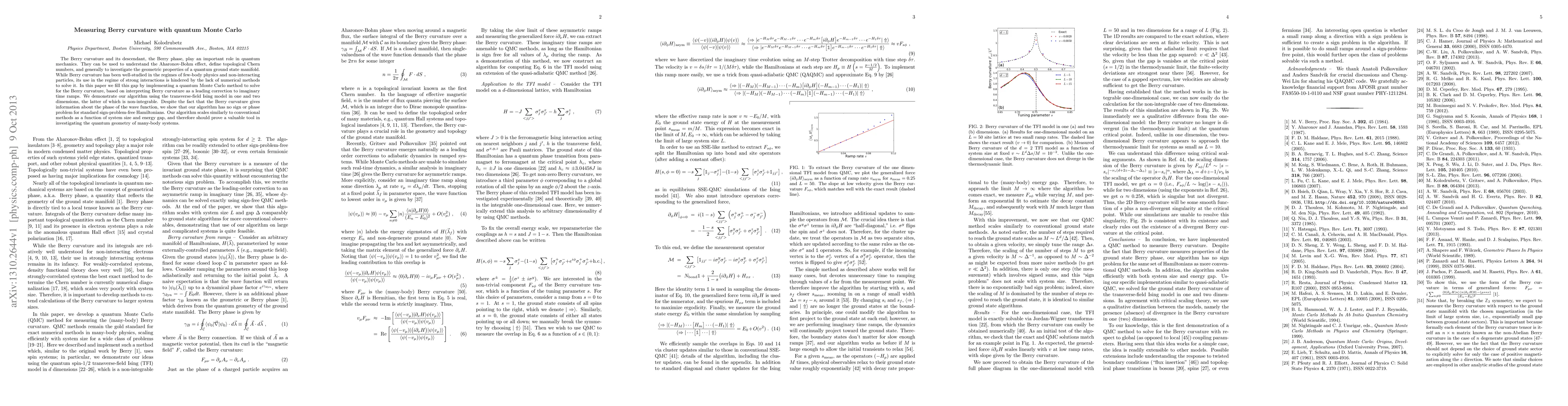 The Berry curvature and its descendant, the Berry phase, play an important role in quantum mechanics. They can be used to understand the Aharonov-Bohm effect, define topological Chern numbers, and generally to investigate the geometric properties of a quantum ground state manifold. While Berry curvature has been well-studied in the regimes of few-body physics and non-interacting particles, its use in the regime of strong interactions is hindered by the lack of numerical methods to solve it. In this paper we fill this gap by implementing a quantum Monte Carlo method to solve for the Berry curvature, based on interpreting Berry curvature as a leading correction to imaginary time ramps. We demonstrate our algorithm using the transverse-field Ising model in one and two dimensions, the latter of which is non-integrable. Despite the fact that the Berry curvature gives information about the phase of the wave function, we show that our algorithm has no sign or phase problem for standard sign-problem-free Hamiltonians. Our algorithm scales similarly to conventional methods as a function of system size and energy gap, and therefore should prove a valuable tool in investigating the quantum geometry of many-body systems.