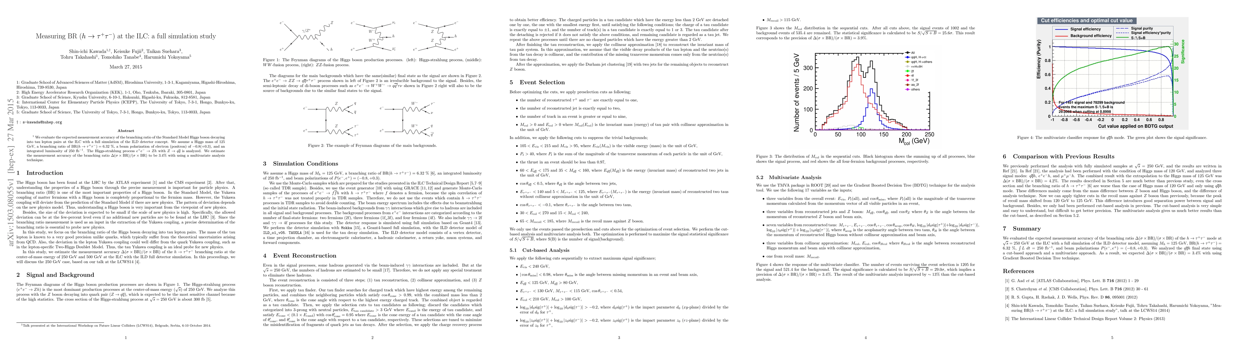 This paper evaluates the measurement accuracy of the branching ratio for the Standard Model Higgs boson decaying into tau pairs at the International Linear Collider (ILC) using a full simulation of the ILD detector. The study estimates a measurement accuracy of 3.4% for the branching ratio under specified conditions.