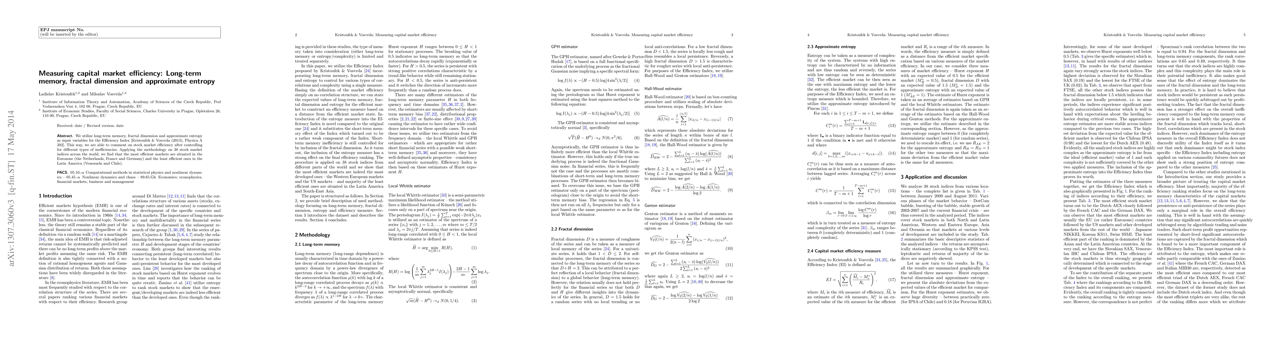 We utilize long-term memory, fractal dimension and approximate entropy as input variables for the Efficiency Index [Kristoufek & Vosvrda (2013), Physica A 392]. This way, we are able to comment on stock market efficiency after controlling for different types of inefficiencies. Applying the methodology on 38 stock market indices across the world, we find that the most efficient markets are situated in the Eurozone (the Netherlands, France and Germany) and the least efficient ones in the Latin America (Venezuela and Chile).