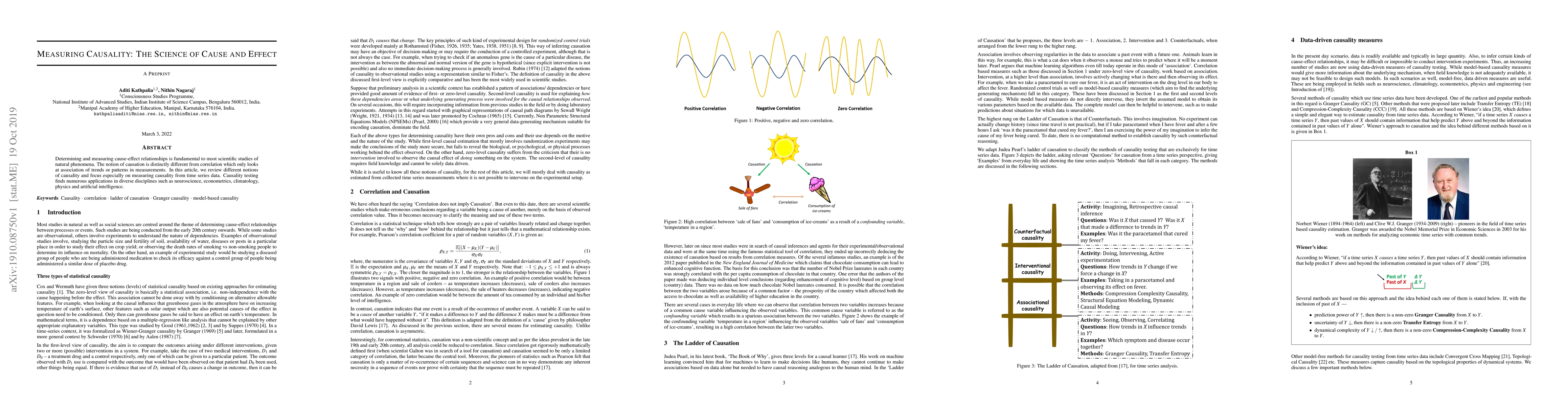 Determining and measuring cause-effect relationships is fundamental to most scientific studies of natural phenomena. The notion of causation is distinctly different from correlation which only looks at association of trends or patterns in measurements. In this article, we review different notions of causality and focus especially on measuring causality from time series data. Causality testing finds numerous applications in diverse disciplines such as neuroscience, econometrics, climatology, physics and artificial intelligence.