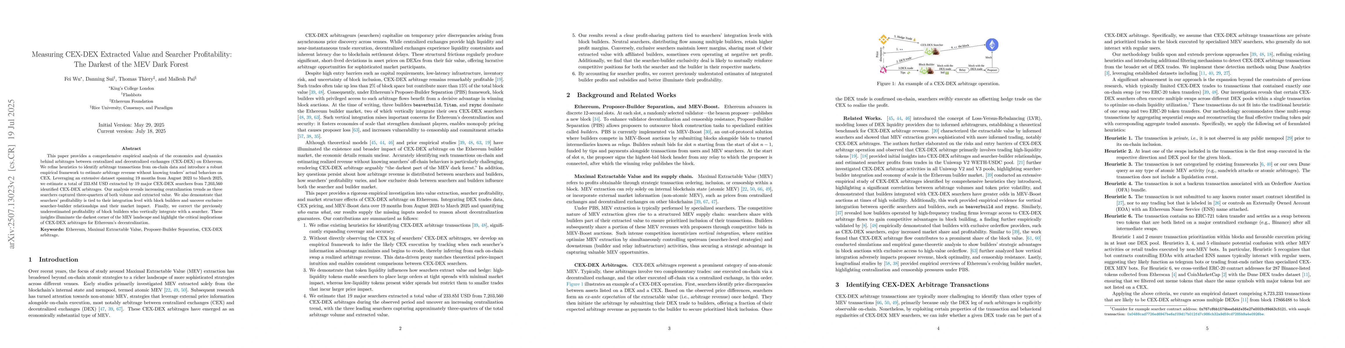 This research highlights the critical implications of CEX-DEX arbitrages for Ethereum's decentralization and provides insights into the economics and dynamics behind these transactions.