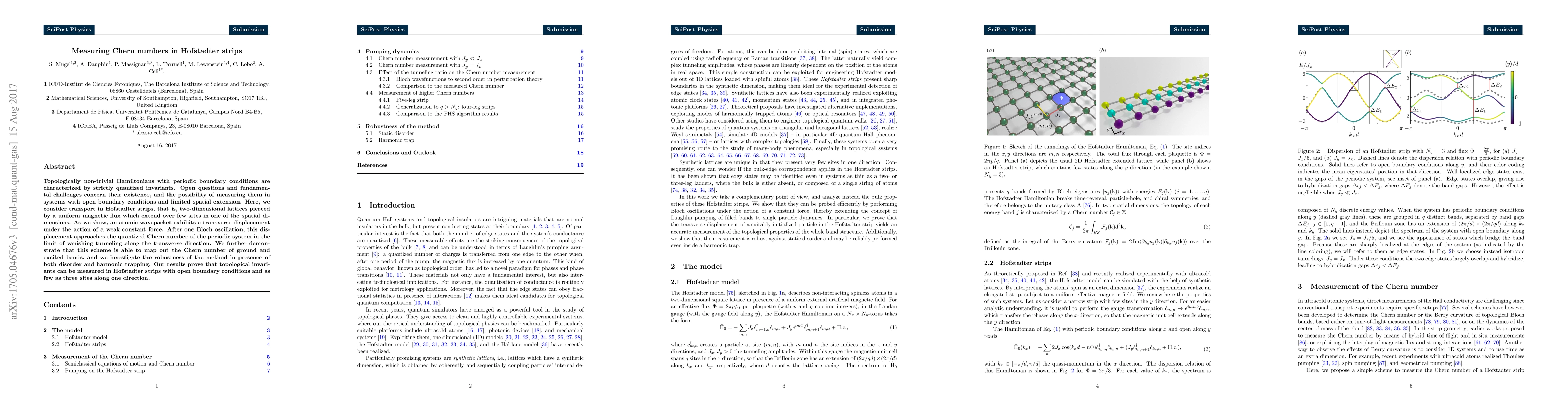 Topologically non-trivial Hamiltonians with periodic boundary conditions are characterized by strictly quantized invariants. Open questions and fundamental challenges concern their existence, and the possibility of measuring them in systems with open boundary conditions and limited spatial extension. Here, we consider transport in Hofstadter strips, that is, two-dimensional lattices pierced by a uniform magnetic flux which extend over few sites in one of the spatial dimensions. As we show, an atomic wavepacket exhibits a transverse displacement under the action of a weak constant force. After one Bloch oscillation, this displacement approaches the quantized Chern number of the periodic system in the limit of vanishing tunneling along the transverse direction. We further demonstrate that this scheme is able to map out the Chern number of ground and excited bands, and we investigate the robustness of the method in presence of both disorder and harmonic trapping. Our results prove that topological invariants can be measured in Hofstadter strips with open boundary conditions and as few as three sites along one direction.