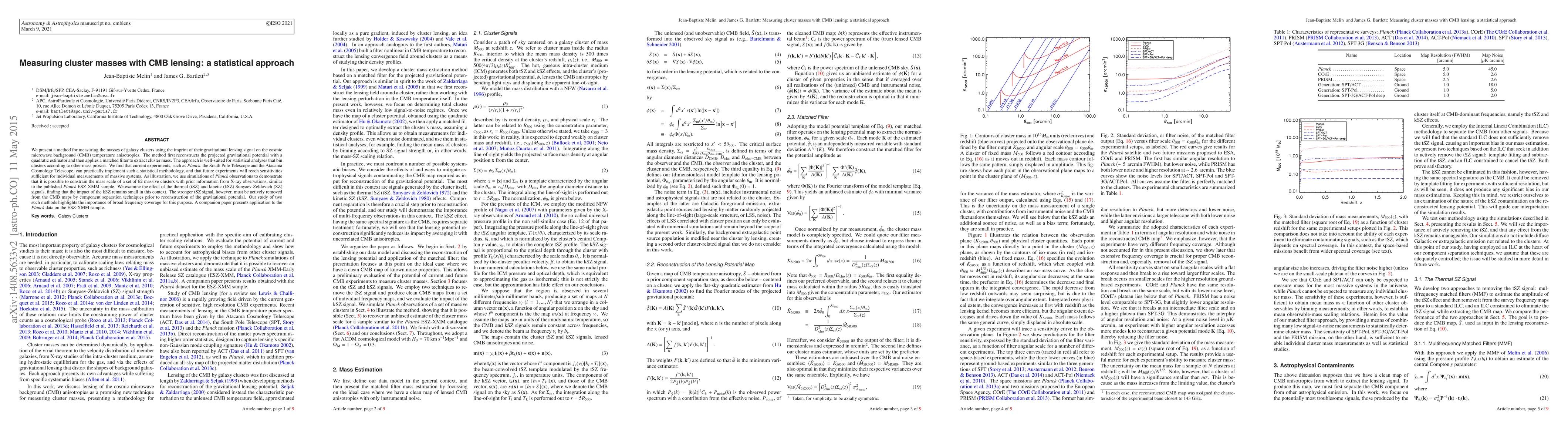 This paper introduces a statistical method for measuring galaxy cluster masses via the gravitational lensing imprint on CMB temperature anisotropies. It employs a quadratic estimator and matched filter, demonstrating practical implementation with current experiments and future prospects for individual cluster measurements.